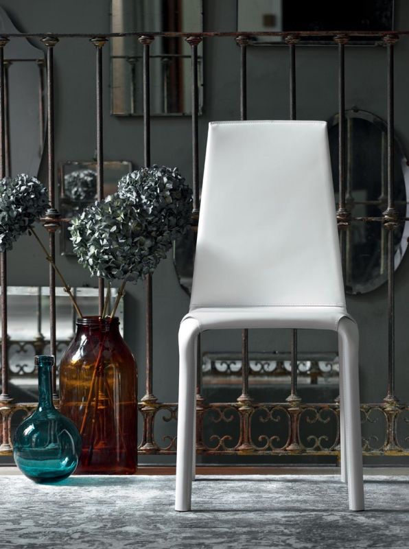 Chair with metal frame. Seat and back padded and upholstered.