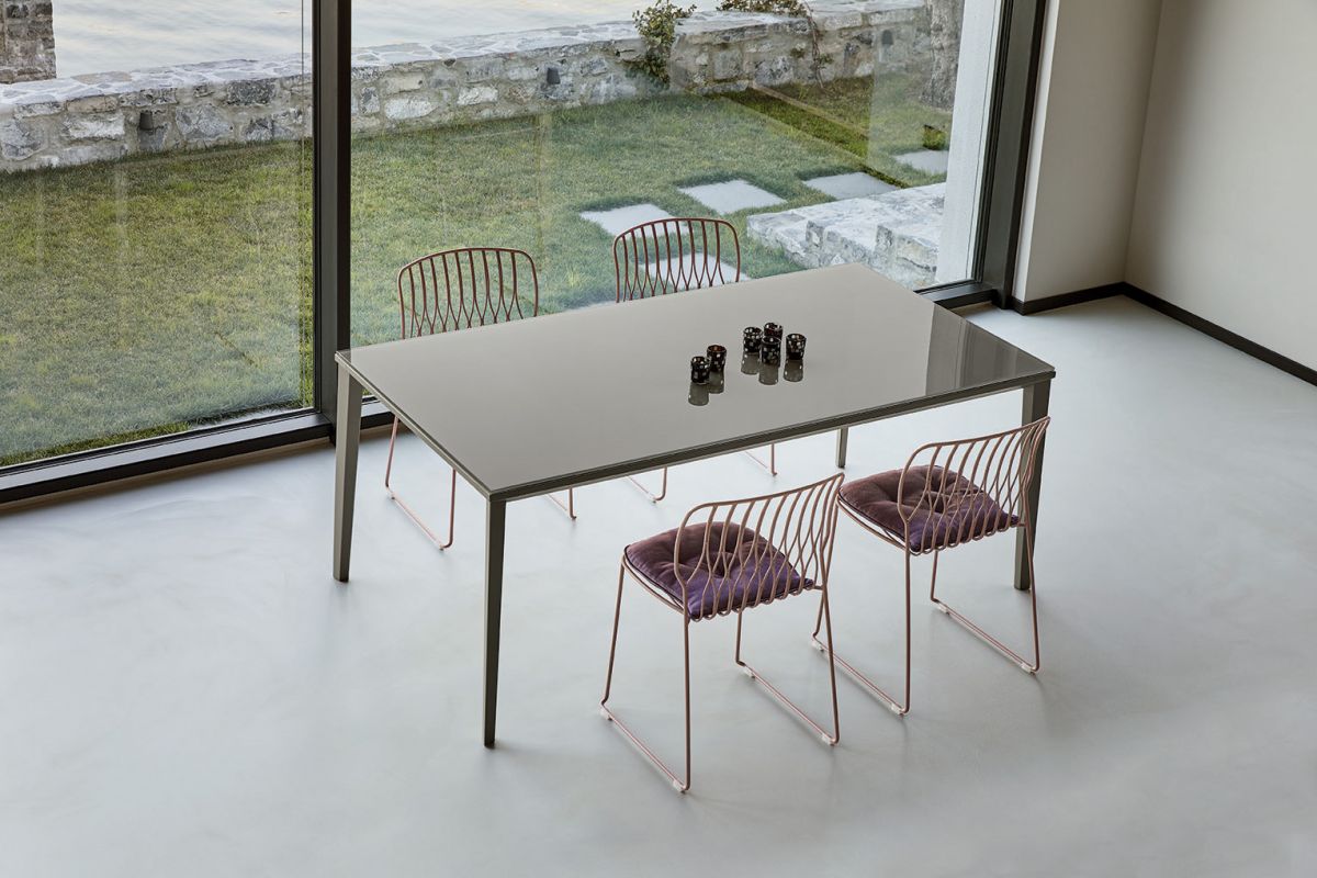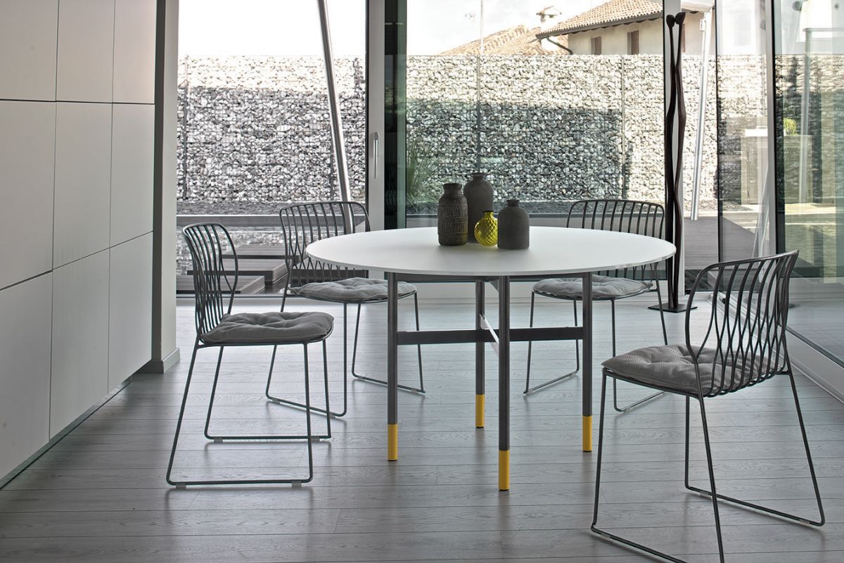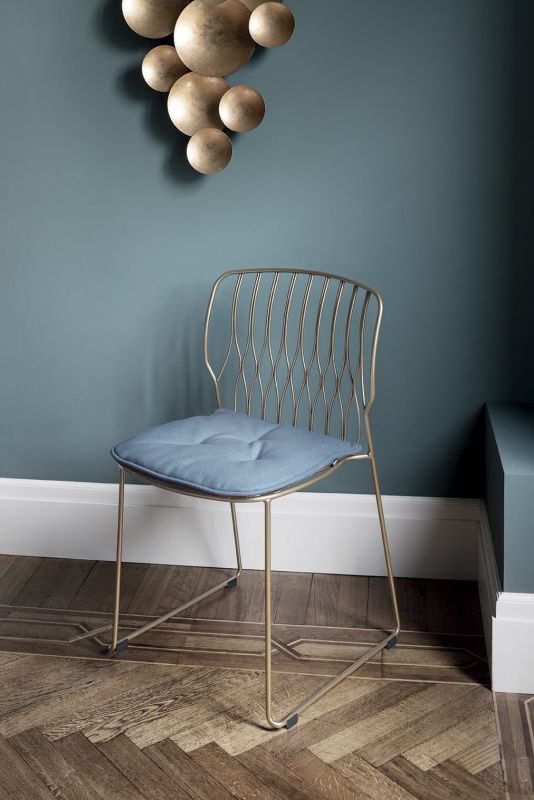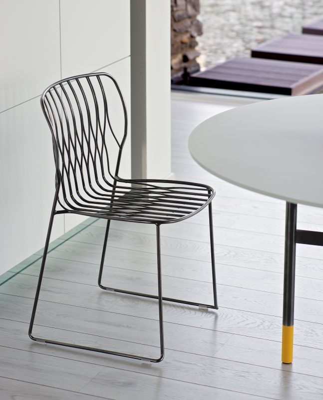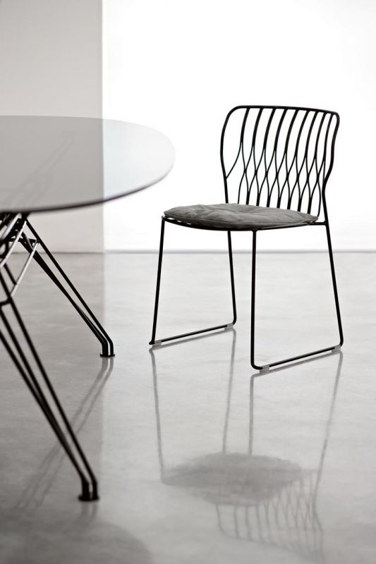 Stackable chair with lacquered Metal frame.