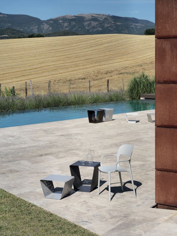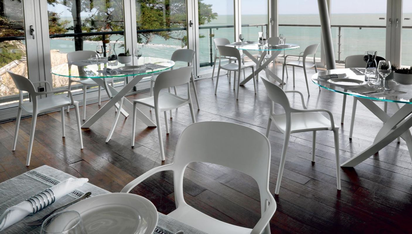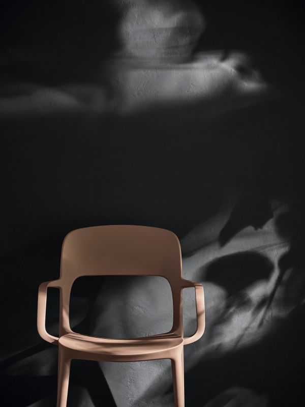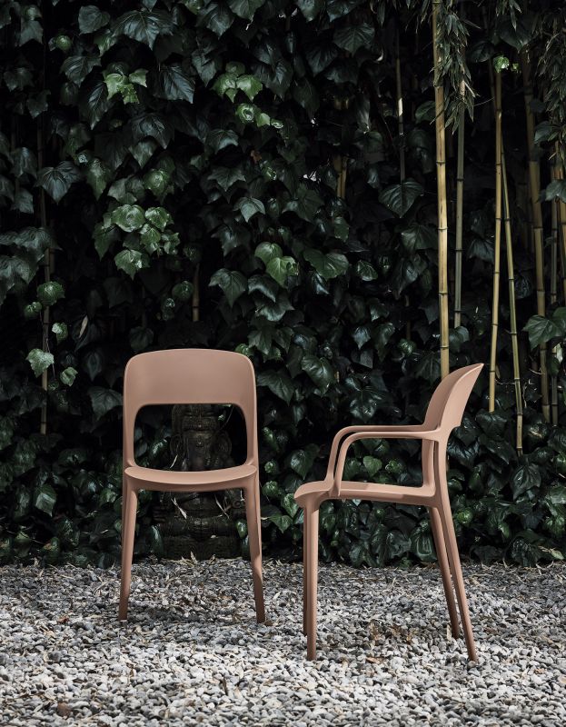 Chair and armchair in polypropylene and glass fibre.