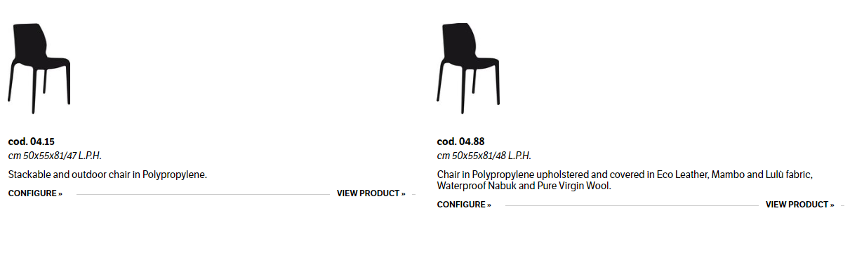 Chair in polypropylene or totally upholstered and covered in eco leather, Mambo and Lulù fabric, waterproof nabuk and pure virgin wool.
