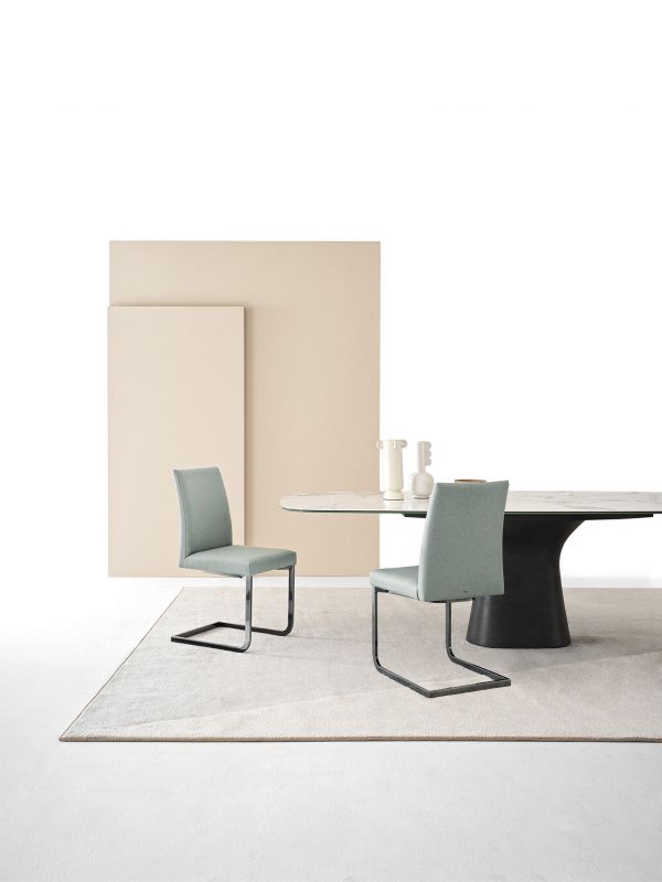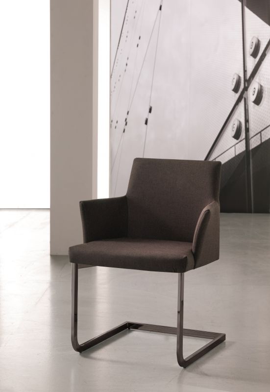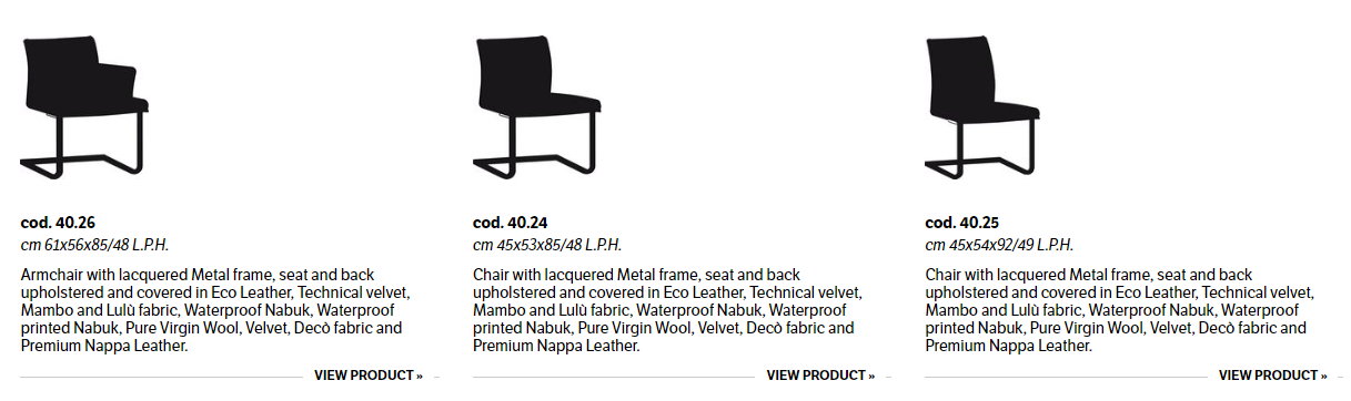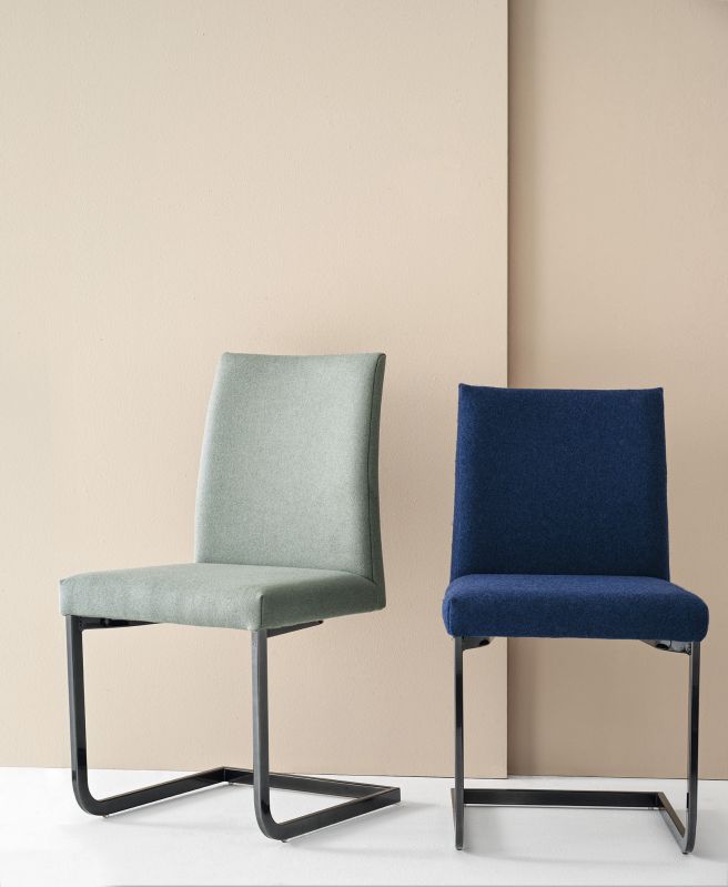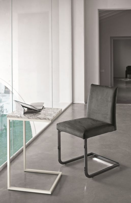 Chair and Armchair with lacquered Metal frame, seat and back upholstered and covered in Eco Leather, Mambo and Lulù fabric, Waterproof Nabuk, Waterproof printed Nabuk, Pure Virgin Wool, Velvet, Decò fabric and Premium Nappa Leather.