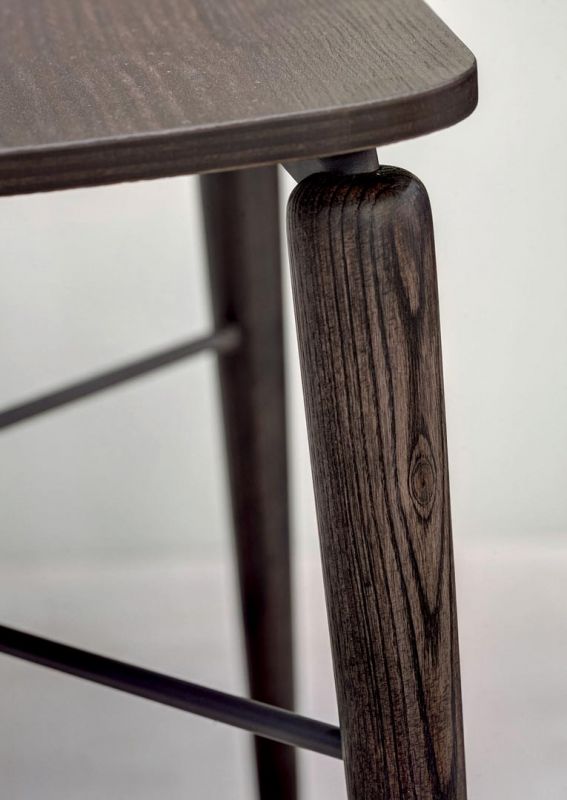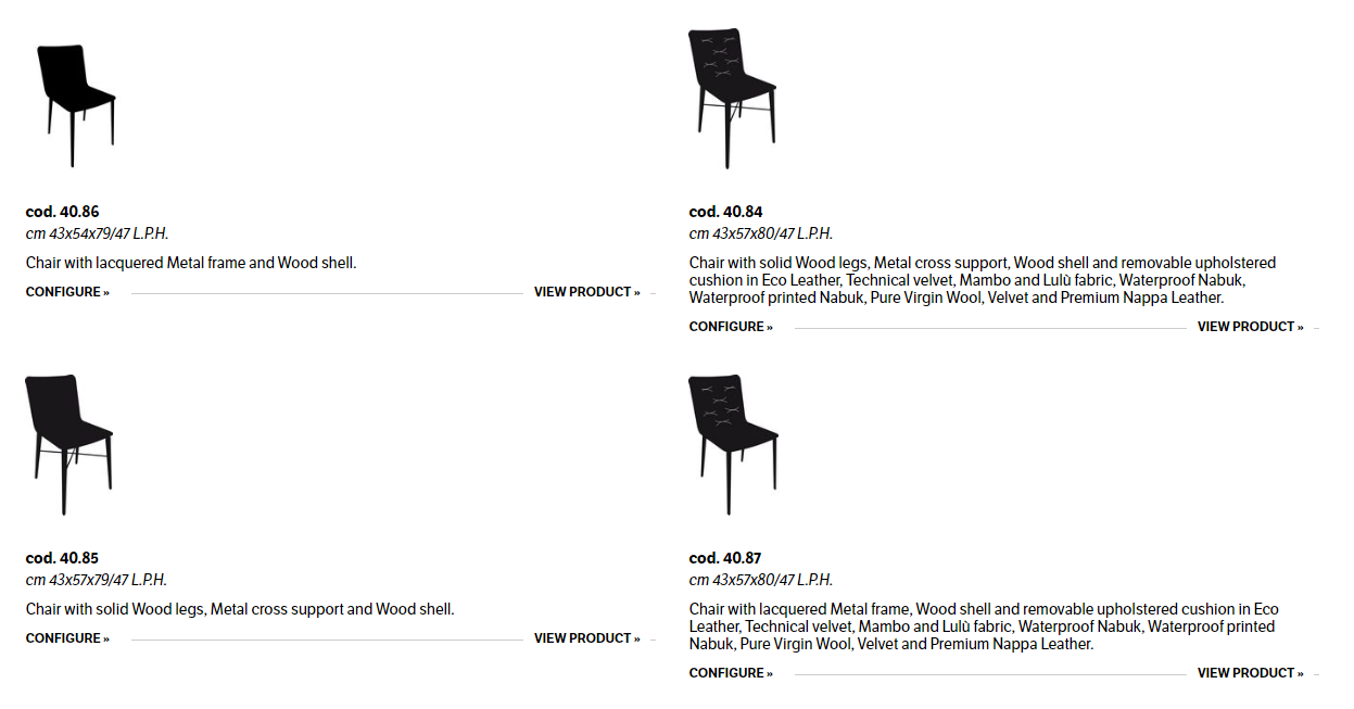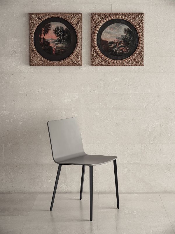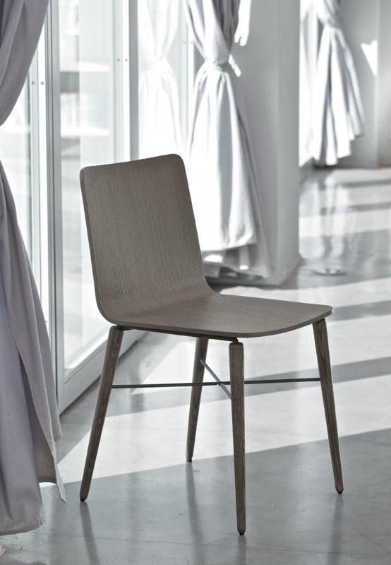 Chair with solid Wood or Metal frame. Shell in lacquered Wood or veneer, with or without cushion quilted and upholstered.
