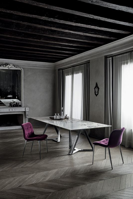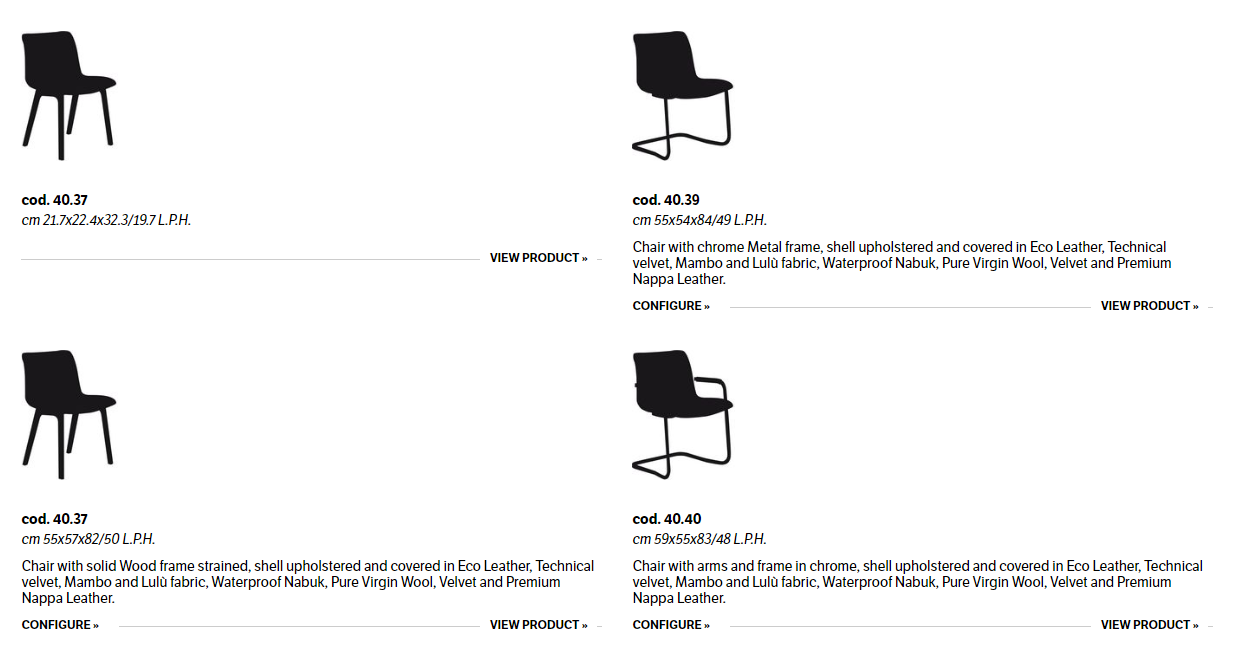 Chair with solid Wood or Metal frame. Shell upholstered and quilted.
