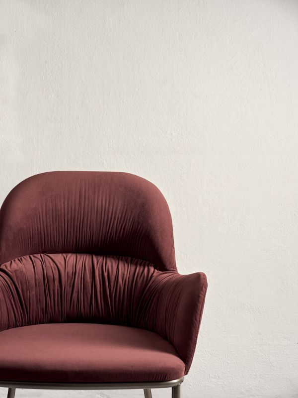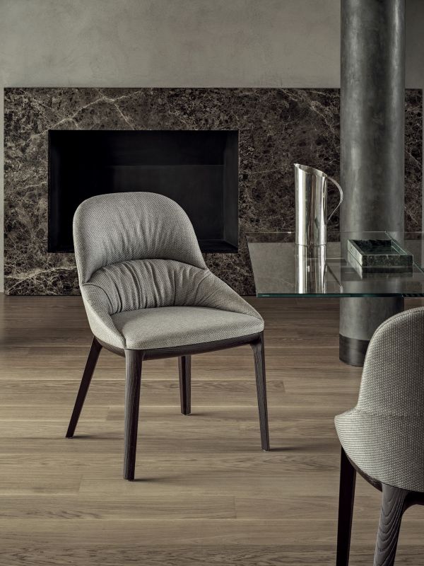 Chair with or without arms,with solid wood or metal frame,upholstered and covered in Eco Leather, Technical Velvet, Mambo and Lulù fabric, Waterproof Nabuk, Waterproof printed Nabuk, Pure Virgin Wool, Velvet, Decò fabric, Kvadrat Field fabric, Coda fabric and Premium Leather.