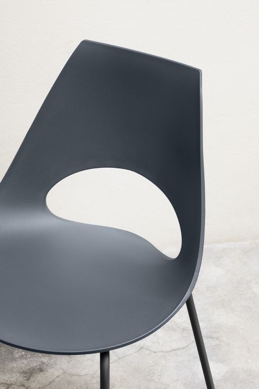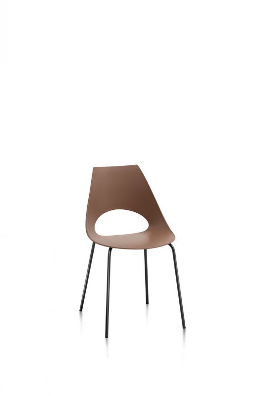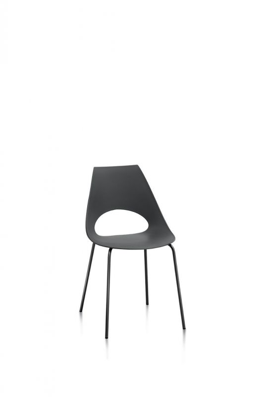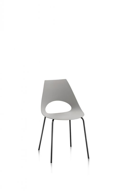 Chair with lacquered or chrome Metal frame, shell in Polypropylene.