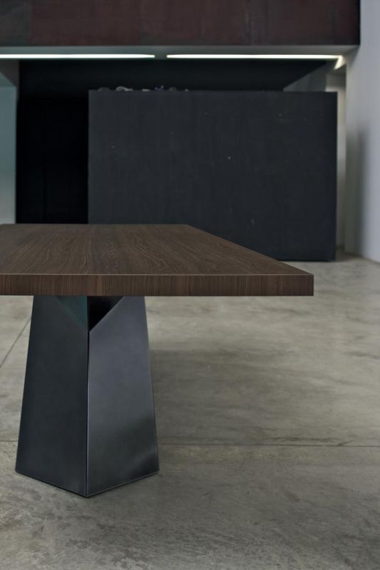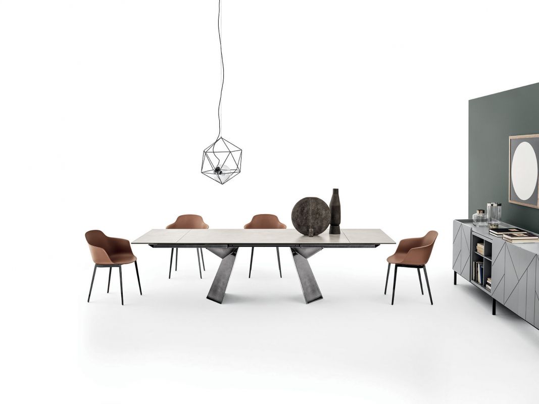 Table fix or with extensions, with lacquered Metal frame. Top in solid Wood, heritage walnut solid Wood, veneer with edge in solid Wood, veneer, glossy Glass, velvet matt Anti-scratch Glass, SuperCeramic, SuperMarble and natural Marble.