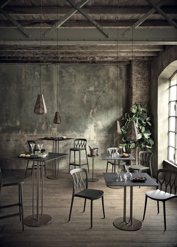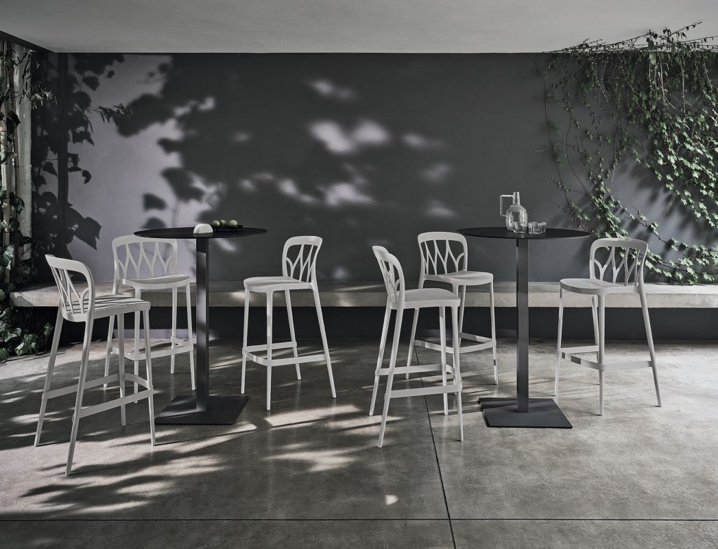 Bases in aluminium for indoor, stainless steel for outdoor and tops in laminate, alucompact or melamine.
