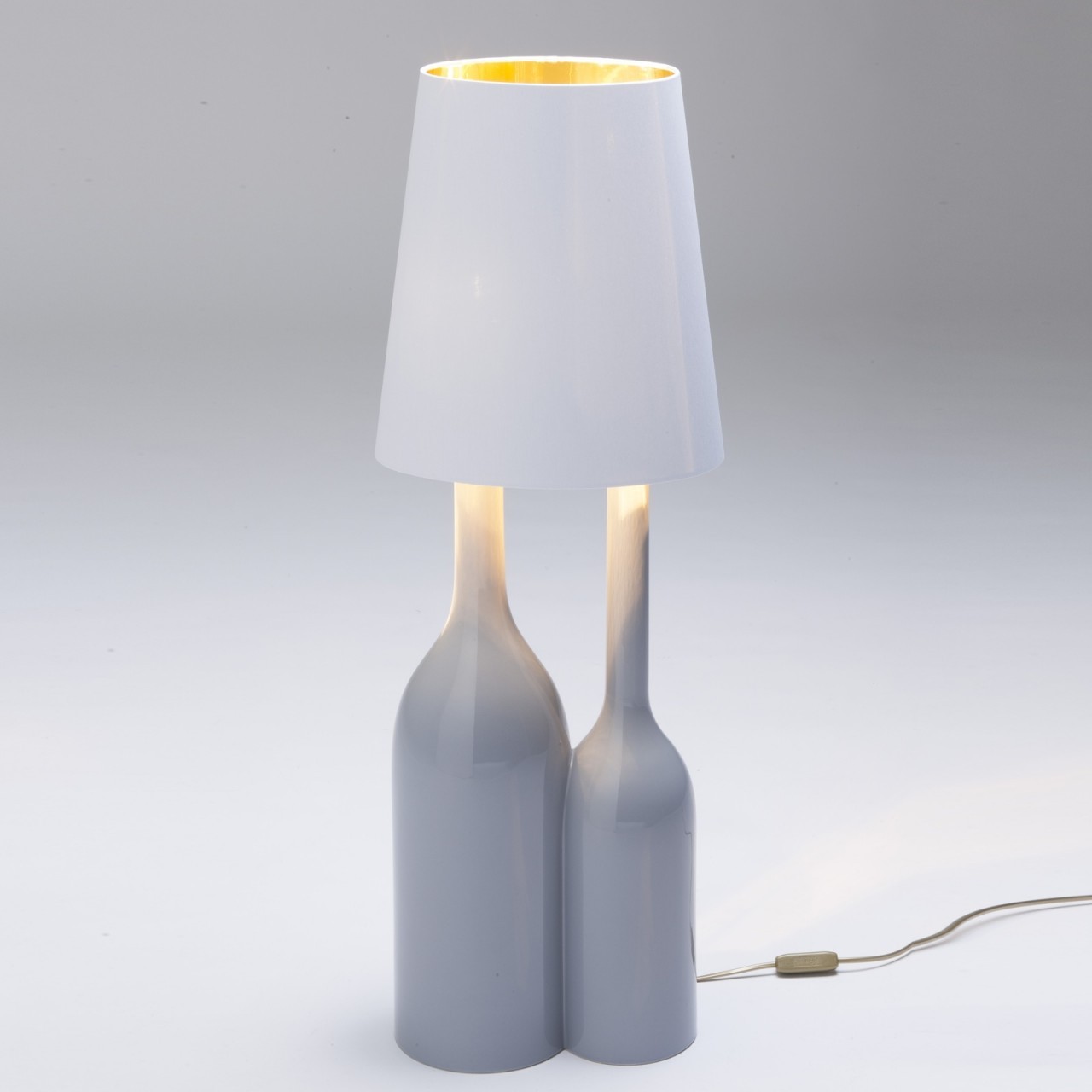 Champagne a Deux sono le lampade iconiche di Sam Baron. Essenziali nella forma, intriganti nella loro composizione a volte asimmetrica, a volte ordinata. Ricercata nei dettagli, il paralume in tessuto fa scorgere una parte dorata interna che rende la luce calda e avvolgente.