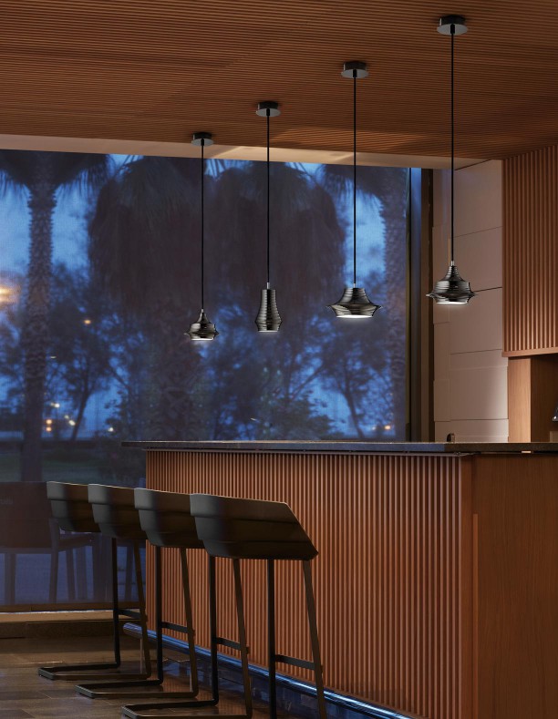 TIBETA is a family of pendant lights made of a spun aluminum body. It is available in three different sizes and shapes which can be used either individually or in groups of three or more units according to client’s needs. Tibeta includes a LED module inside, which provides direct bottom light.