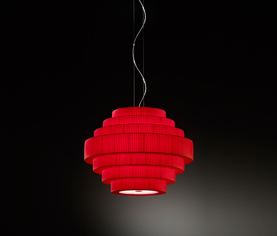 Lamps in big format, warm light, big balls with circular shape that fill the space and become high decorative elements with high light comfort. Due to its large measures, MOS are specifically indicated to contract market and indoor use. Its structure ends with an opal white glass diffuser that blends and directs bottom light. MOS has been manually manufacted with translucent ribbon.