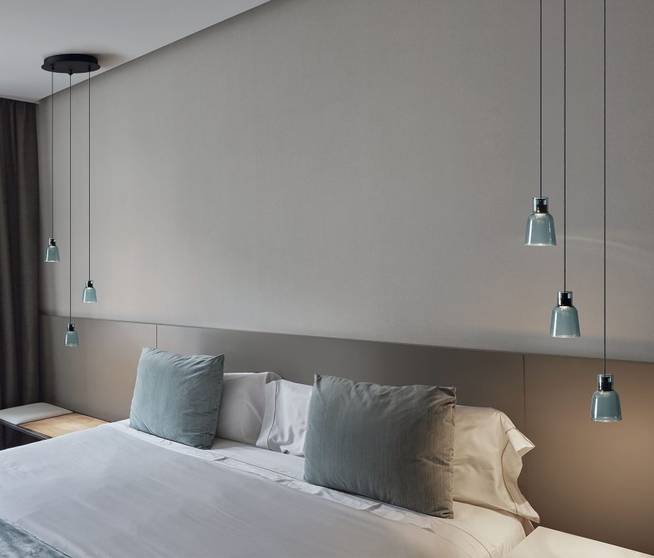 Drop and Drip's small screen is made of borosilicate glass, finer and more delicate than blown glass. "I wanted the material to be very tasteful, almost like a candy," says Christophe. The choice of glass is intimately related to the light that creates. In the words of its creator: "I was looking for a very bright light, and the translucent glass and its shape contribute to it. The light source is an LED that is hidden so that light is the only protagonist. Then, when the light is projected and reflected in the materials that are found along the way, it creates a set of sparkles and shadows. All that, enrich the object. " Its light is intimate, but it also has a practical utility for those who are nearby. "I always bear in mind the space where a lamp is going to be located because that is where it becomes meaningful" explains Christophe. The Drop and the Drip are intended for application in both residential and contract projects. Thanks to its multiple applications it works very well in all hotel spaces, in public areas as well as in rooms.