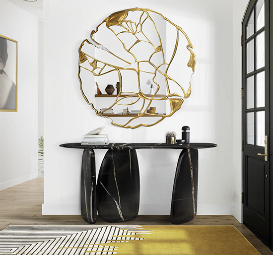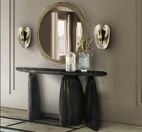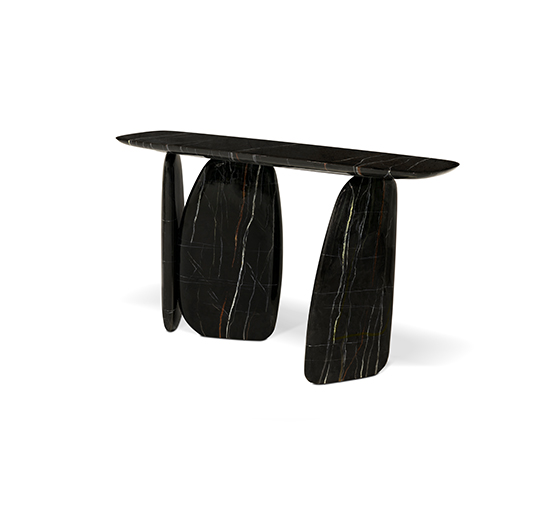 Dolmens are ancient stone monuments from the Neolithic period. These unique structures were the inspiration behind the ARDARA Console Table. With a finish in black faux-marble painting glossy, this modern hallway console table will give a unique twist to any modern contemporary interior design