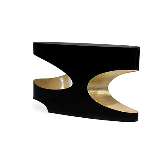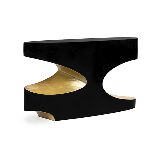Bryce is a giant natural amphitheatre caused by erosion through the Paunsaugnt Plateau. The BRYCE I Console pays tribute to this plateau through its unique design in high gloss black lacquer and glossy gold leaf. The BRYCE Black Lacquer Console Table will be the focus point in every room you set it in