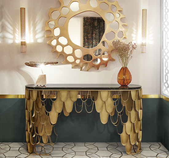 Koi Carp is a recurring symbol of Japanese culture. Its natural colour mutations reveal their capacity to adapt, just like KOI Console Table. With a base in brushed brass matte and a top in Nero Marquina marble, this contemporary hallway console table will add refined elegance to any modern contemporary interior design