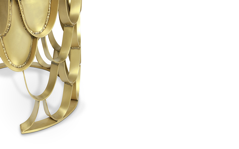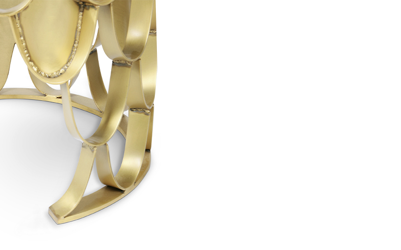 Koi Carp is a recurring symbol of Japanese culture. Its natural colour mutations reveal their capacity to adapt, just like KOI Stool. Featuring a base in brushed brass matte and a top in cotton velvet, this upholstered stool will add refined elegance to any modern contemporary home decor.