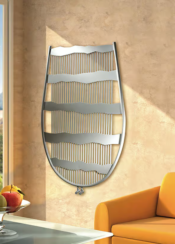 Rino Carrara proposes a model quite unlike the usual rigid radiator, adding the contents and shapes he loves to include in all his works to create an embracing overall design.
