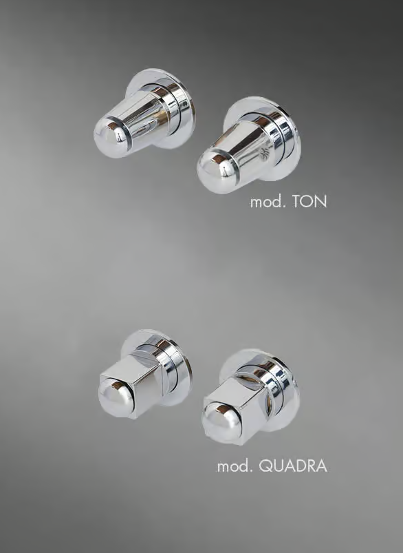 Wall recessed valves assembly chome, equipped with handles to control remotely the radiator, is supplied with fittings at rear.