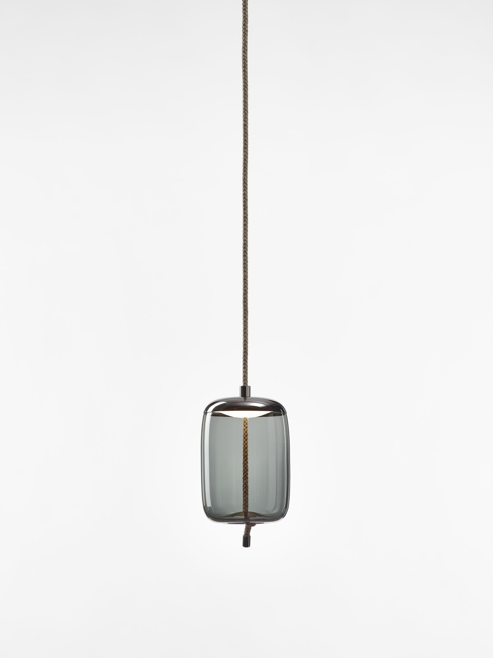 Knot is a collection of stately pendant lights that appose two dramatically dissimilar materials. The design combines coarse natural fibre with smooth, transparent blown glass to arouse a contrast as striking as it is dignified.