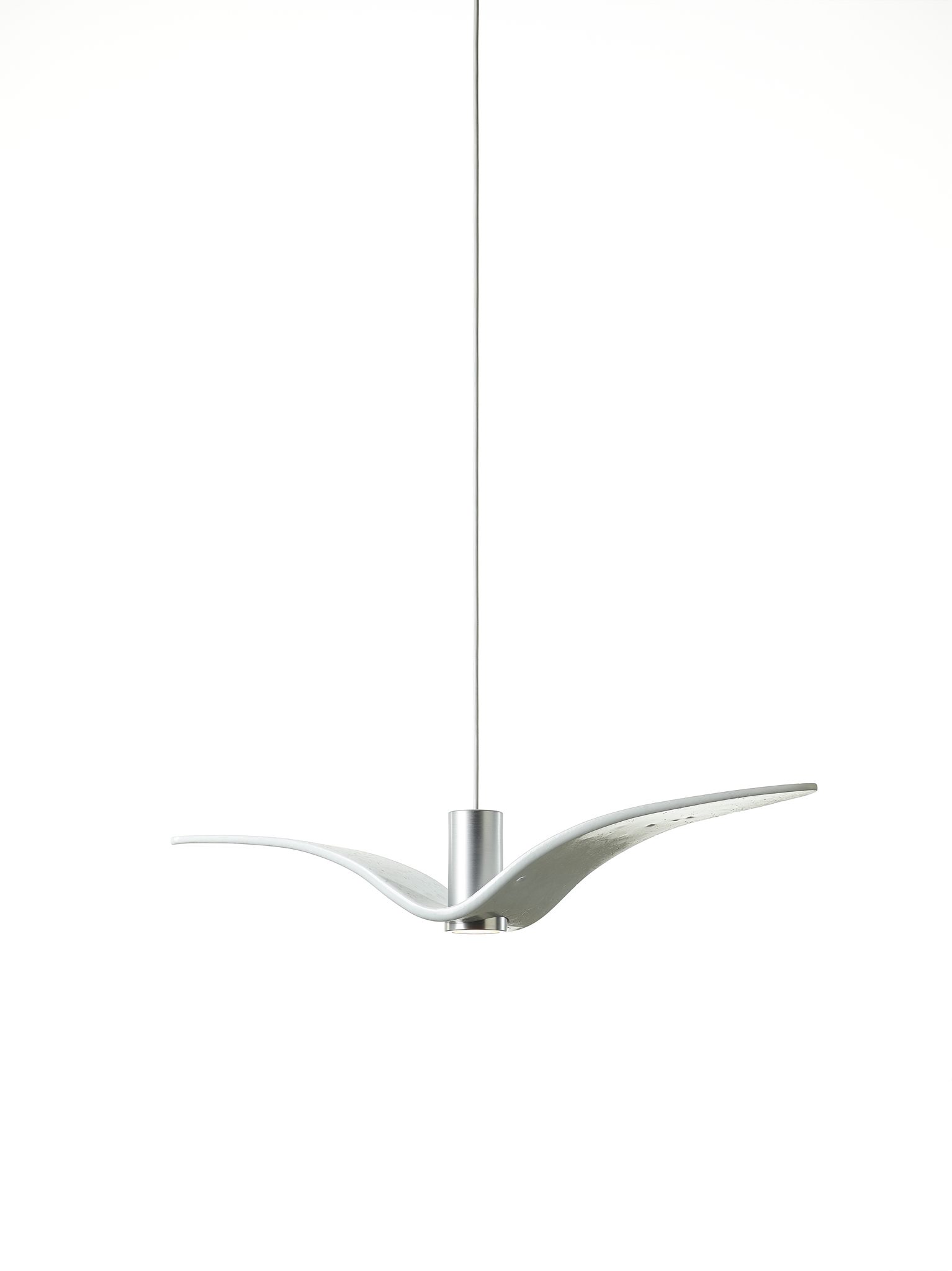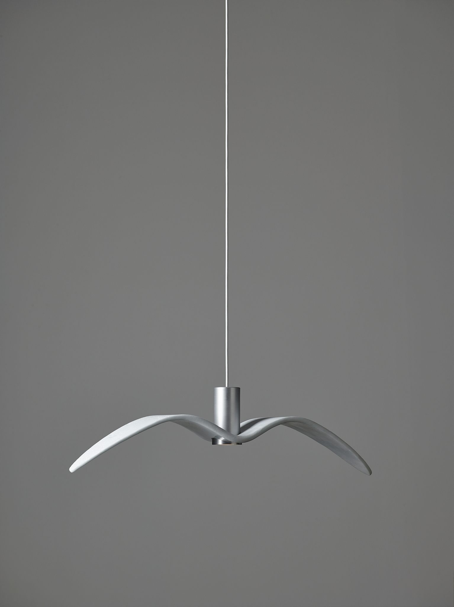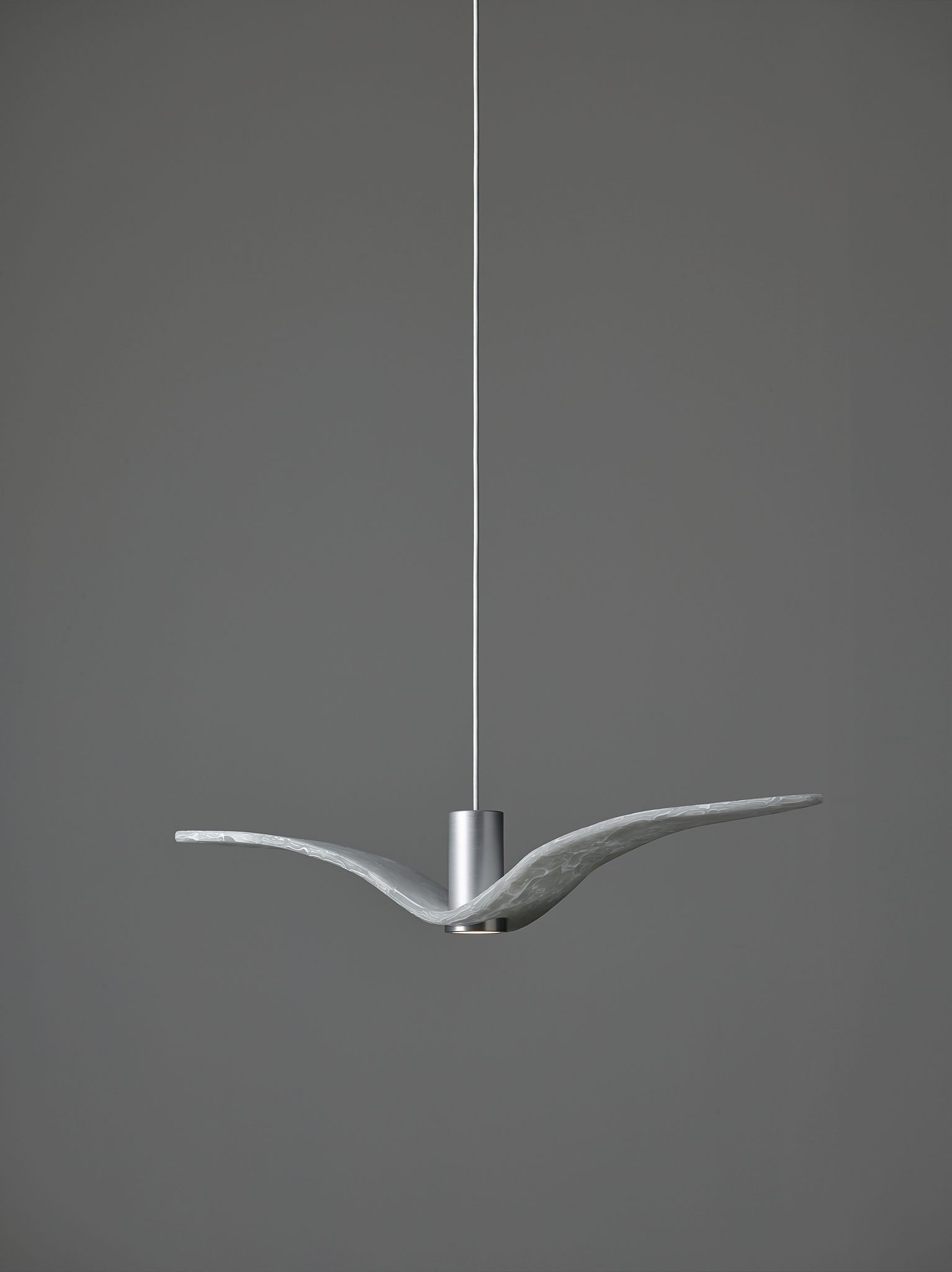 Night Birds Exterior are identical to the original indoor collection, which was inspired by the freedom and abandon of bird flight. In order to withstand the whims of the weather, the lights have been modified to comply with the IP54 rating for exterior use, namely by enlarging and weatherproofing the positionable hand-polished dural body, which conceals a sophisticated balancing mechanism and the subtle LED light source. The bigger, more robust metal body also allows for a greater selection of light sources.