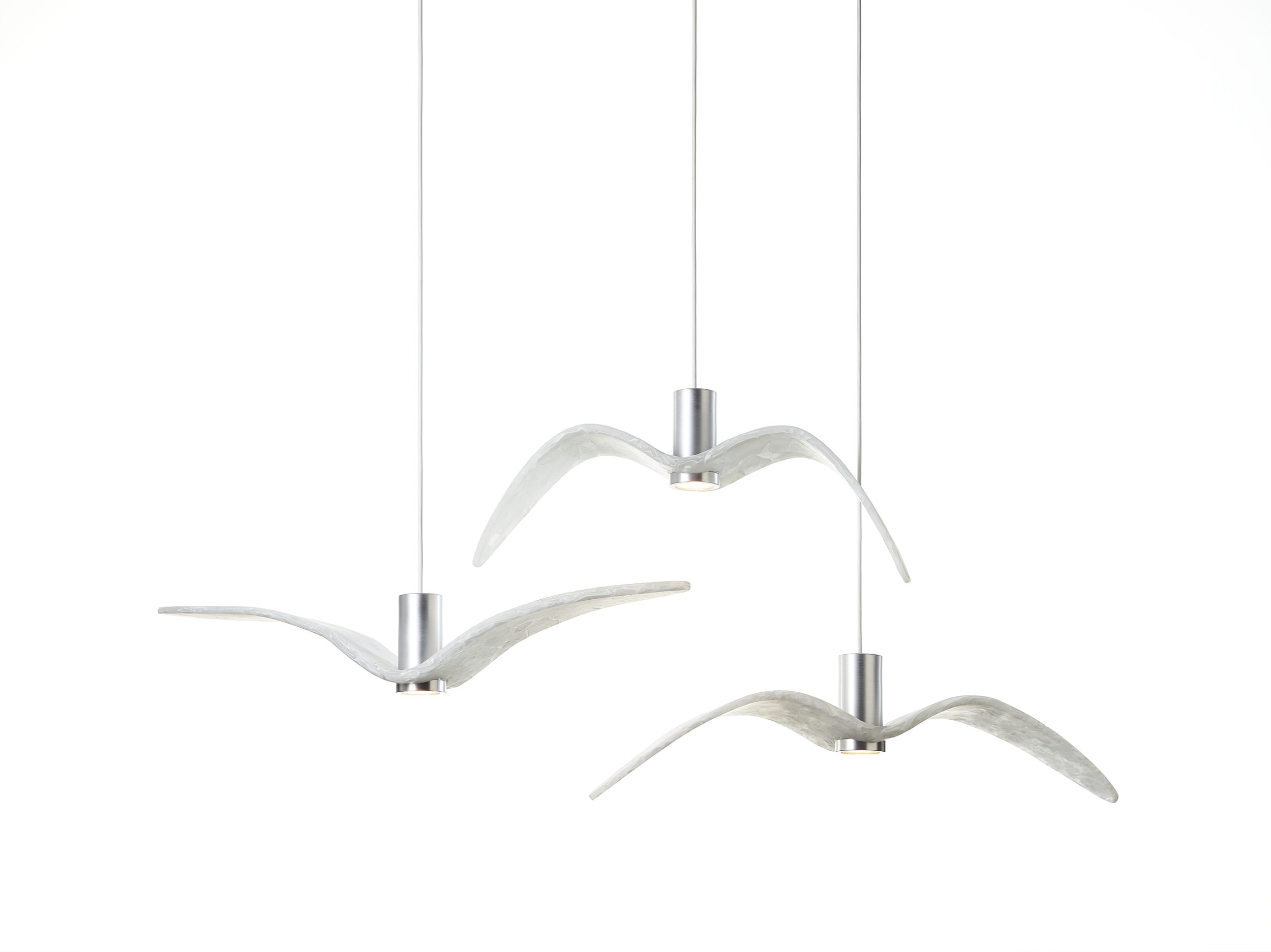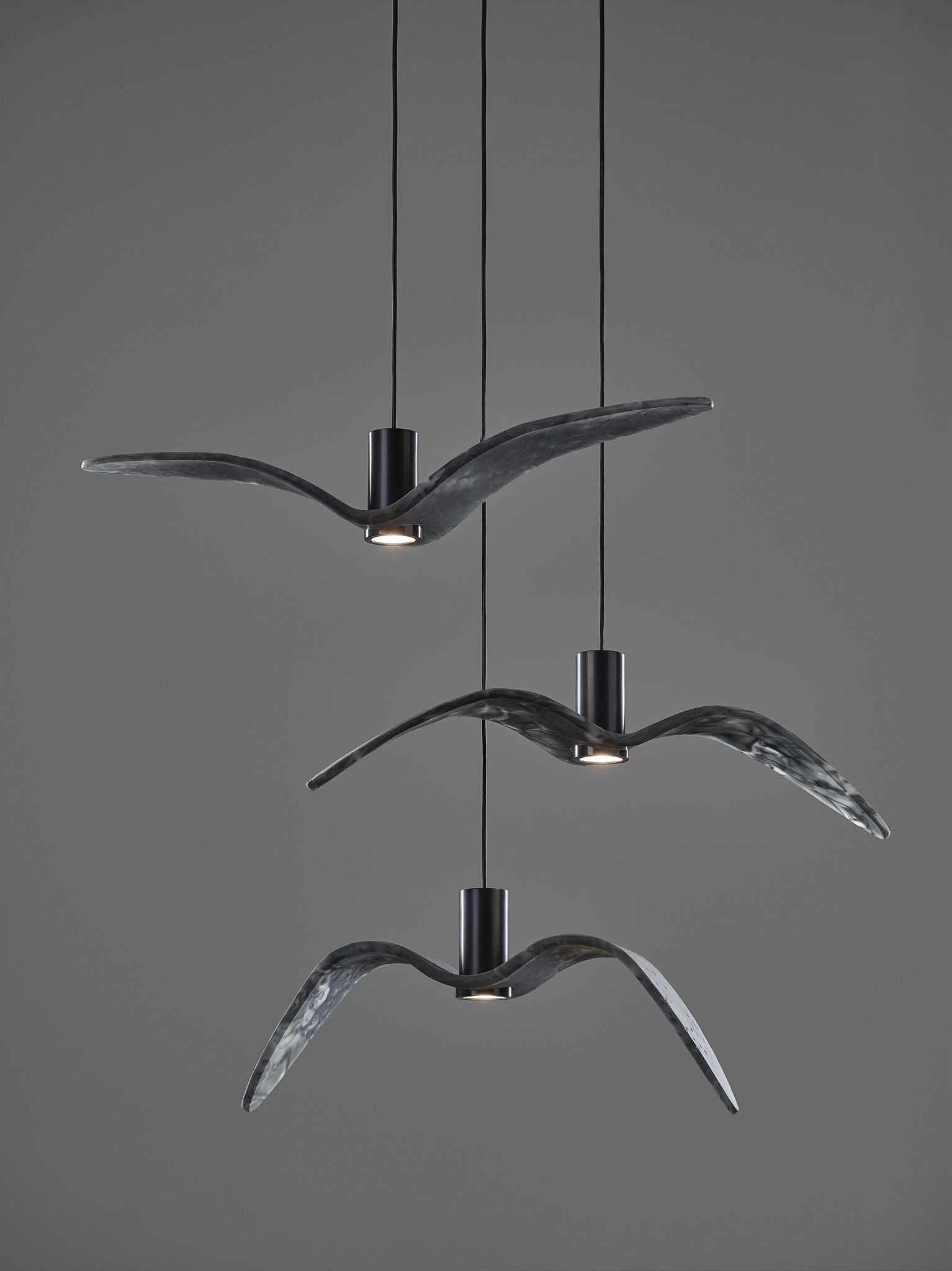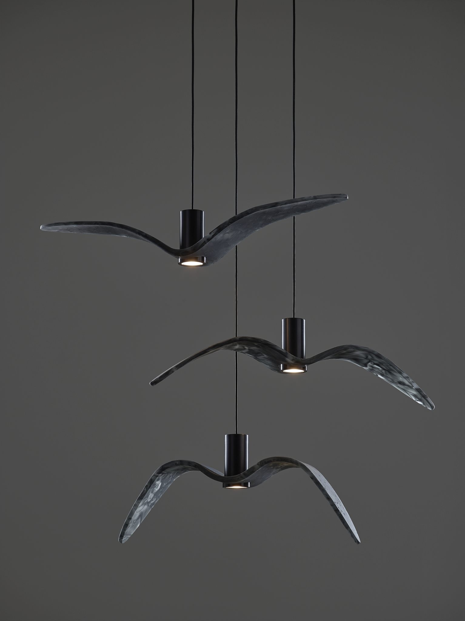 Like the original Night Birds collection, Night Birds Exterior offers three different lights, each with a different wing position, which come in either white or dark (nearly black) variants. From now on, Night Birds are as home in the elements or the dark of night as they are in the comfort of the indoors.