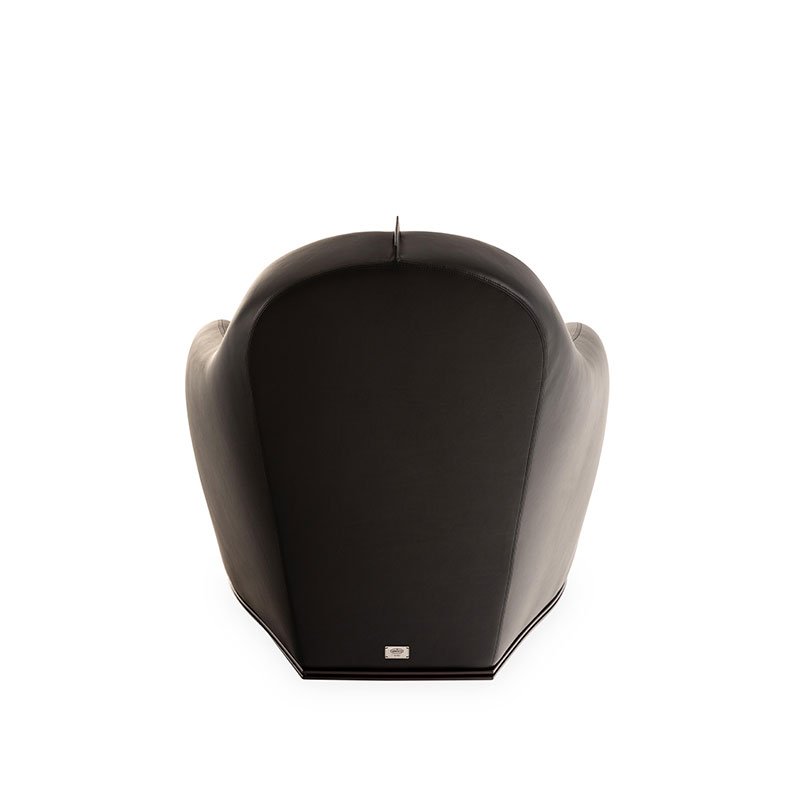 The sinuous and aerodynamic curves of the Noire trace Bugatti’s history from its origins to the most recent hyper sport cars. The stylistic elements of the iconic Voiture Noire inspire the details of the armchair: starting from the dorsal fin of the supercar, reinterpreted on the rest with a steel fin leather covered, through to the unmistakable lines of the Bugatti radiator suggested in the Noire shell.