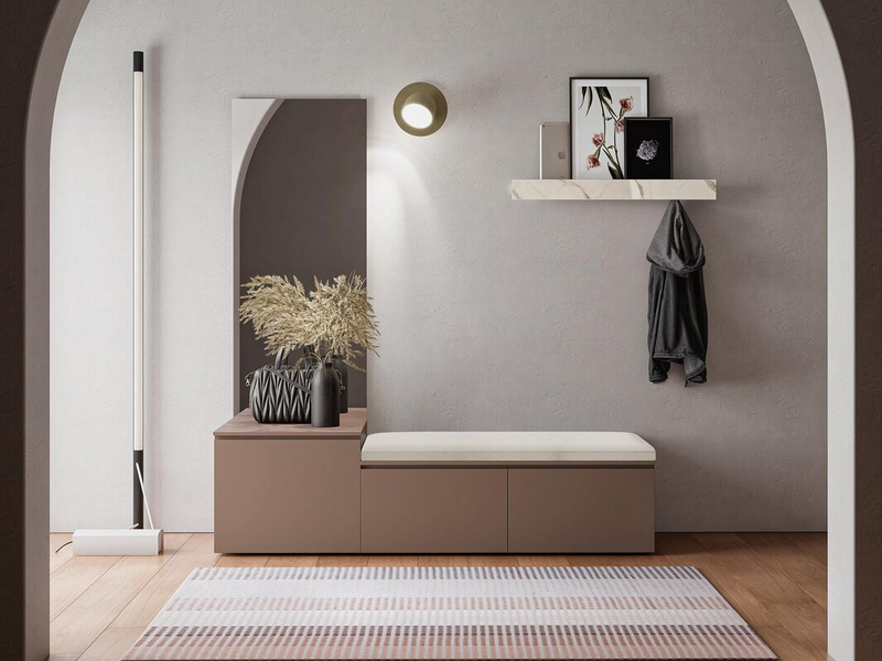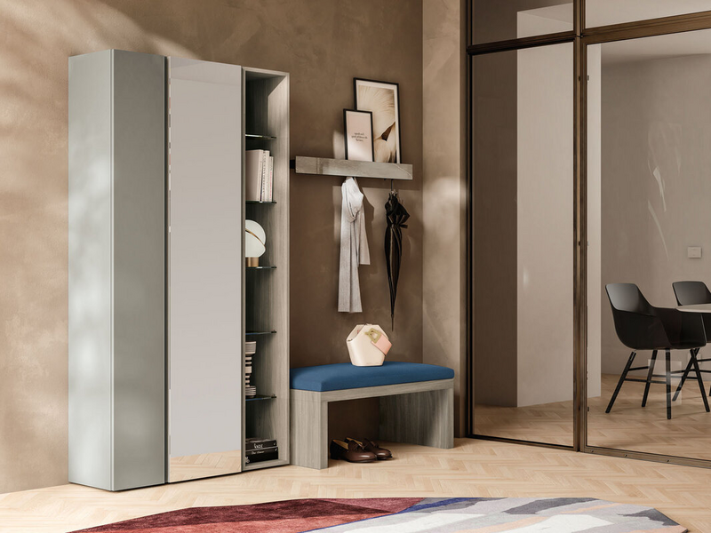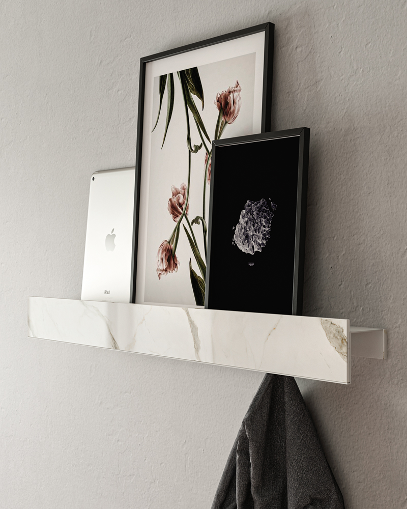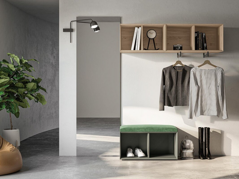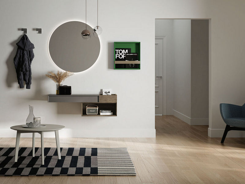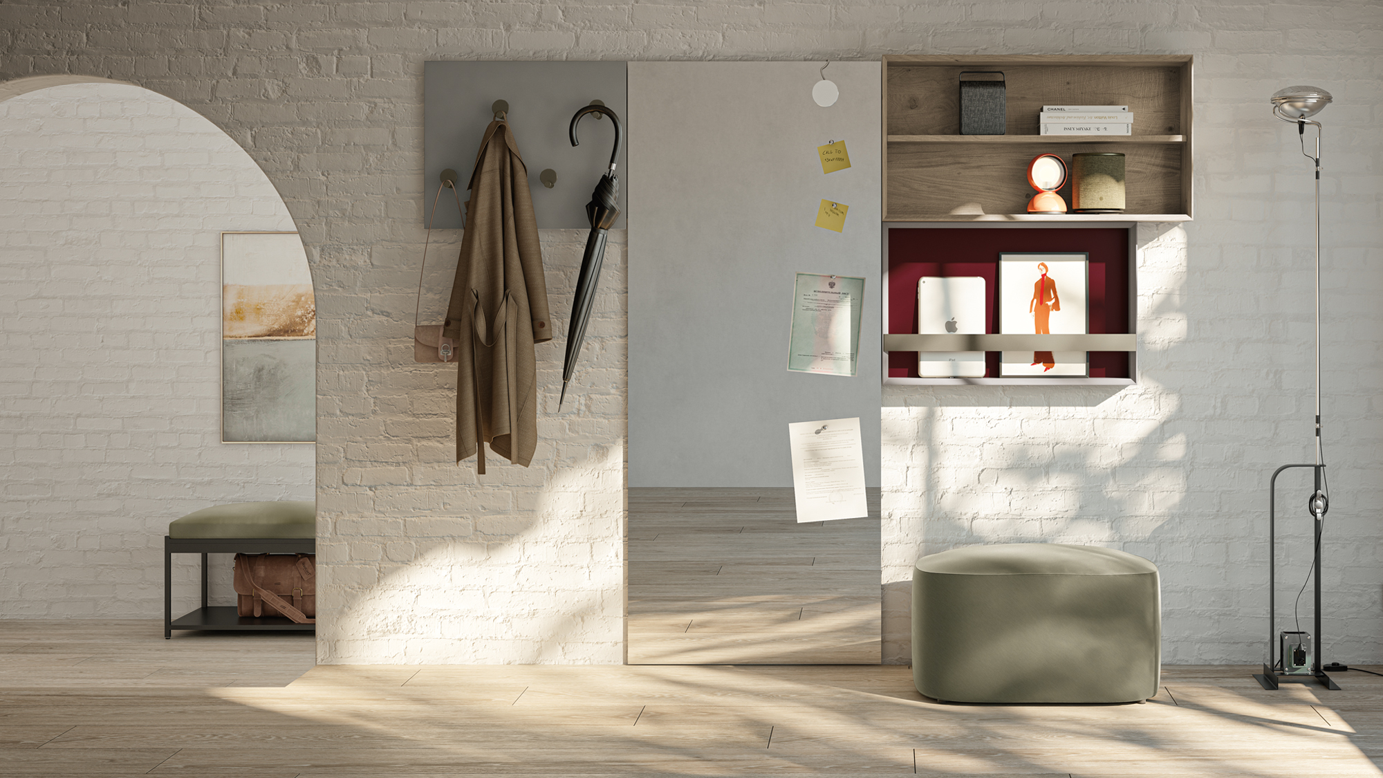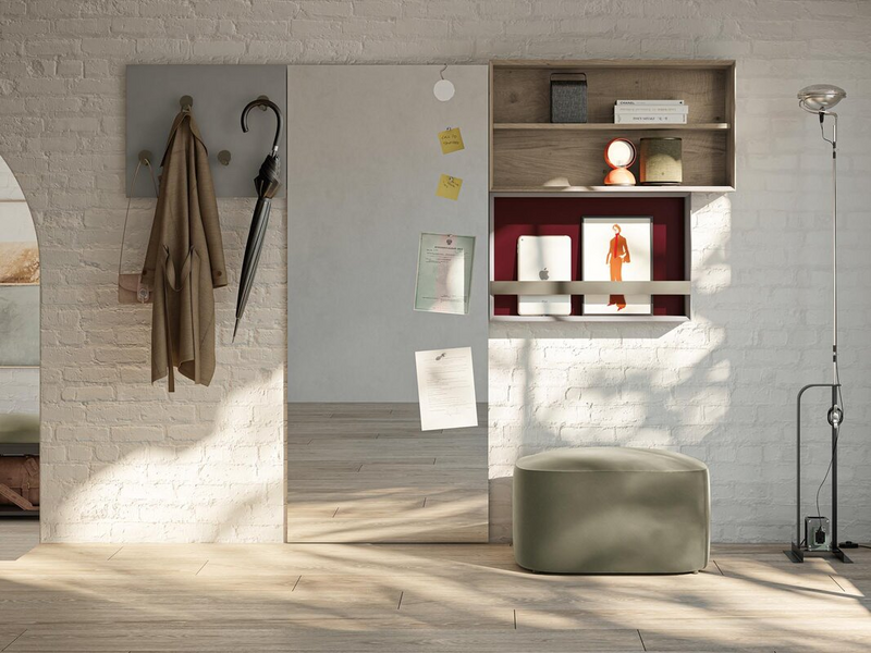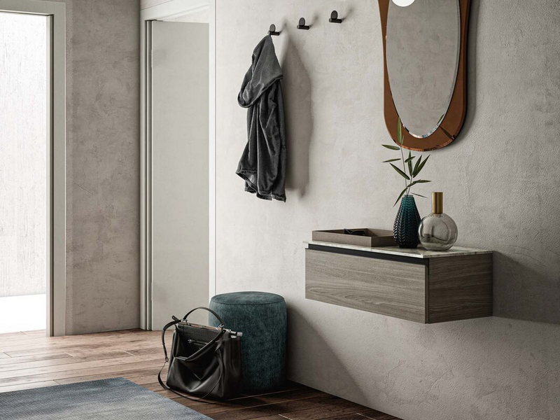 With a linear entrance furniture such as Sessanta every entrance, hallway or even the smallest space can be elegantly transformed and find its function. There are endless possibilities to customise cosy and functional solutions made up of hanging elements, drawers, mirrors, coat racks and open units.