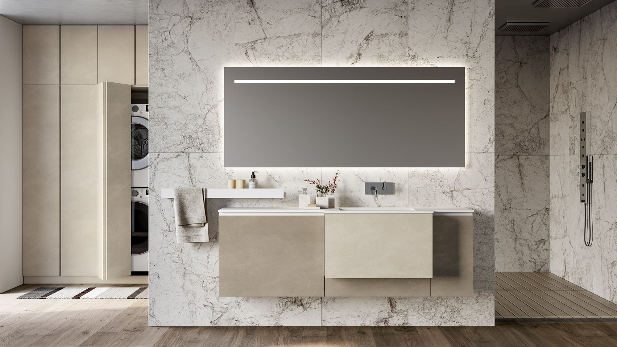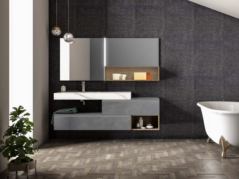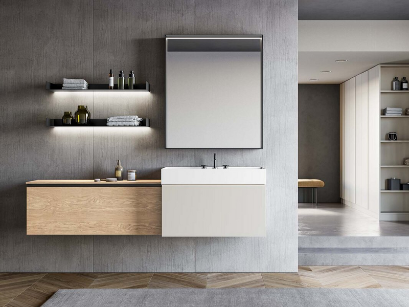 From a concept of a simple, modern bathroom furniture to a concept that combines aesthetics and functionality to raise modularity to its highest peaks and satisfy the most diverse design requirements. This is Lapis. Distinctive feature: the essentiality of a 45° door grip.