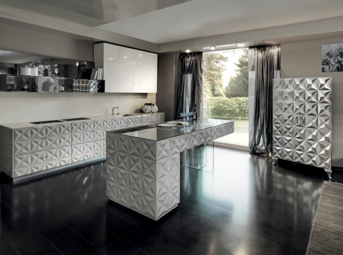 La storica collezione che ha reso celebre il marchio con le sue forme geometriche e superfici sfaccettate. Suggestivi effetti di movimento in un gioco percettivo ad effetto trompe l’oeil che cambia in funzione della luce, in un continuo alternarsi di luci ed ombre.