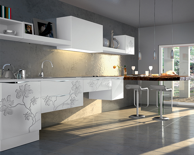 Una collezione ispirata alla delicatezza di un fiore senza tempo. Un ramage fantasioso realizzato a rilievo per impreziosire le superfici di mobili e boiserie.
