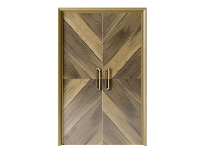 Le superfici possono essere così personalizzate con venature a vista dall’effetto fiammato, per una resa pittorica in contrasto con le forme simmetriche della collezione.