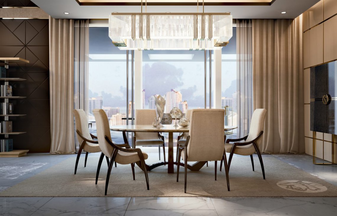 La preziosità degli arredi é accentuata dai riflessi dell’acciaio e dell’oro delle strutture, in perfetta sintonia con gli inserti dell’elegante “Rosa” del marchio Bizzotto Italia elegante dettaglio stilistico senza tempo.