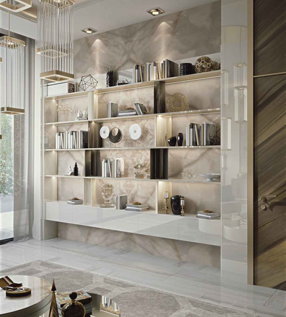 Una gamma di arredi modulari, dove le note stilistiche della collezione, elegante e minimal, sono interpretate giocando con i materiali e le lavorazioni ricercate.