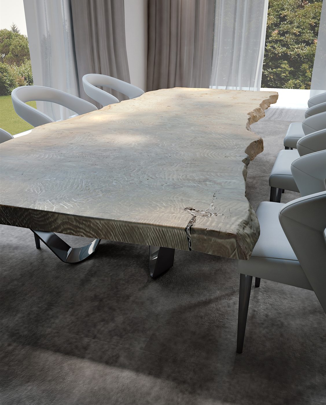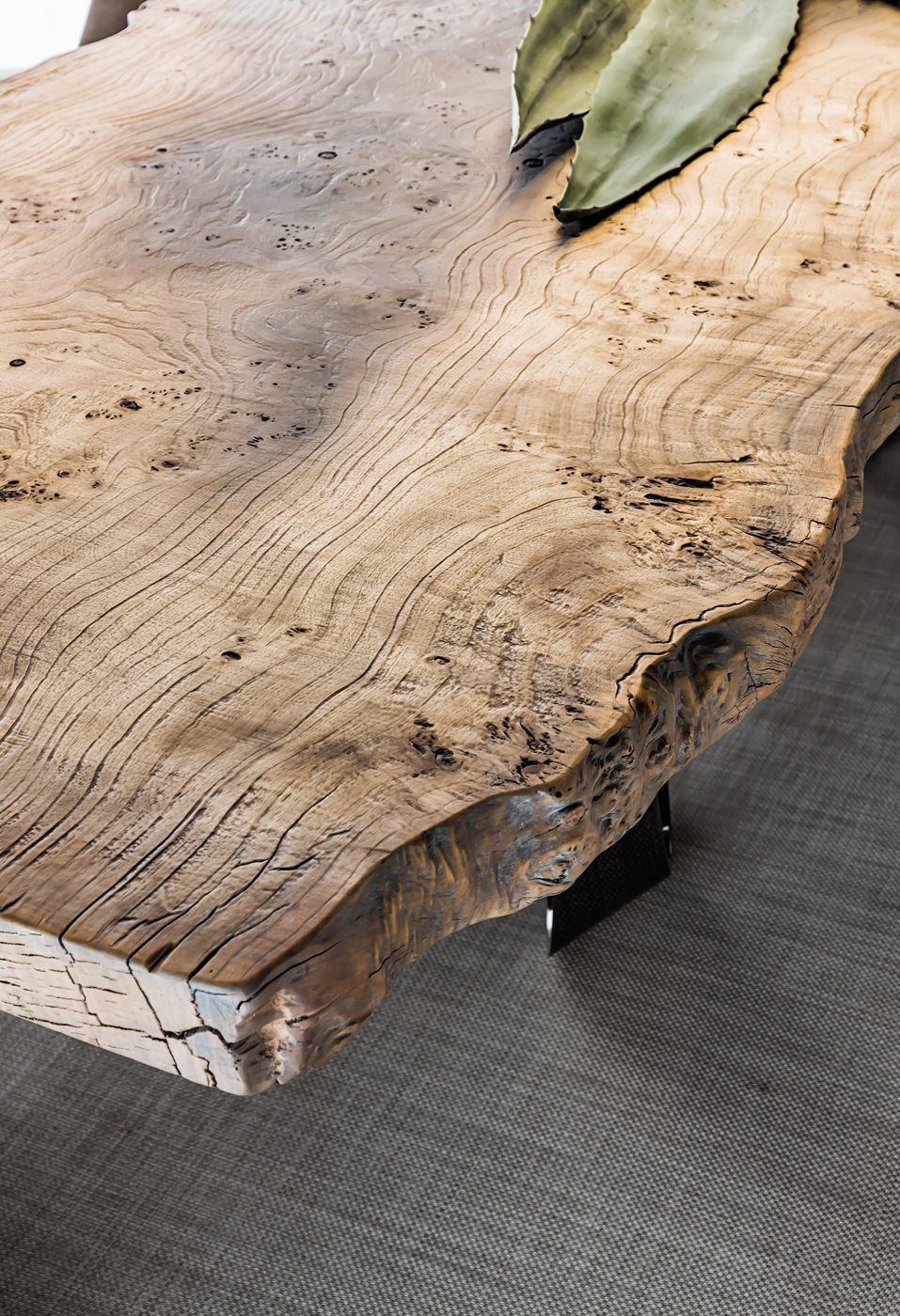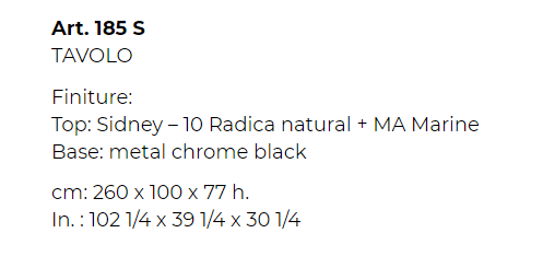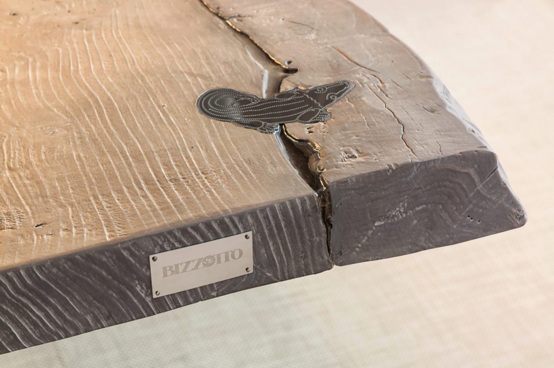 Una collezione che nasce dalla potenza della natura e si manifesta dall’incontro di elementi opposti come la terra e l’aria: l’imponente piano in radica si abbina ad un basamento in metallo chrome black, elemento aereo che suggerisce una sensazione di leggerezza.