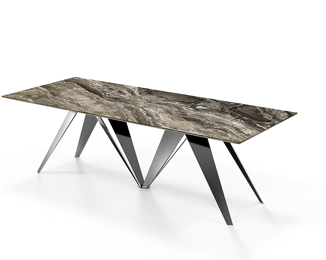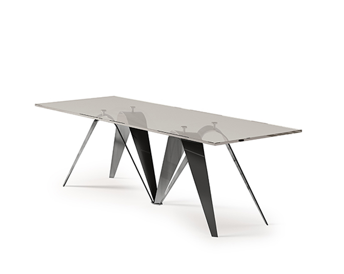 La base si presta alla personalizzazione, lasciando la libertà di scegliere di posizionare la gamba verso l’alto, oppure secondo una linea discendente, che ricorda il ripiegarsi delle fronde degli alberi.
