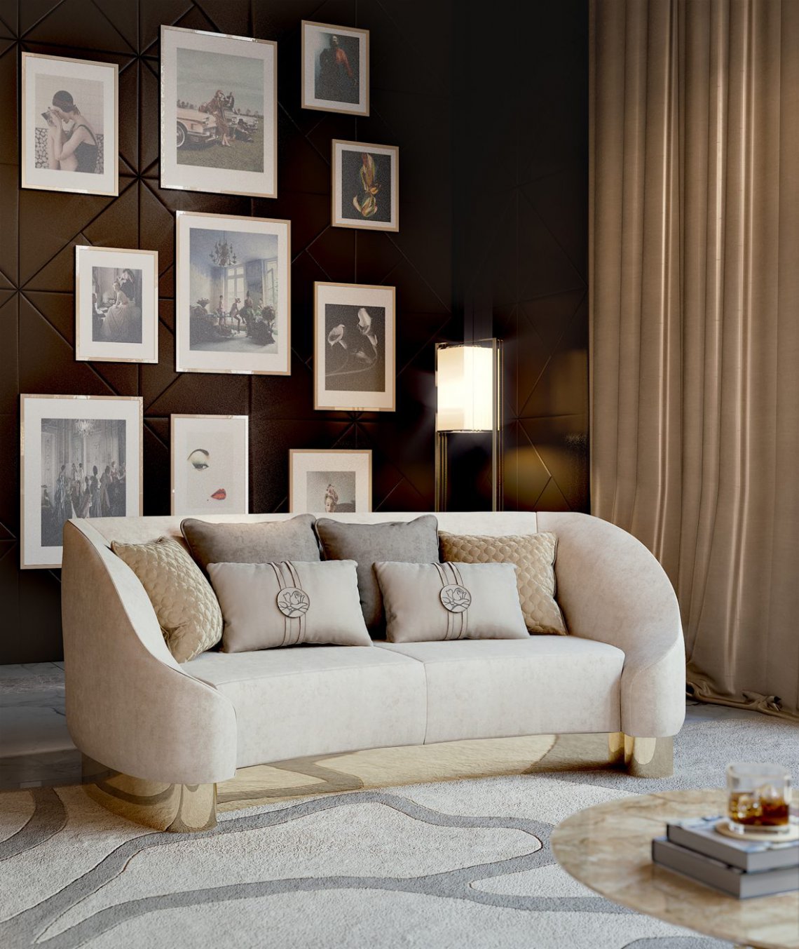 La preziosità degli arredi é accentuata dai riflessi dell’acciaio e dell’oro delle strutture, in perfetta sintonia con gli inserti dell’elegante “Rosa” del marchio Bizzotto Italia elegante dettaglio stilistico senza tempo.