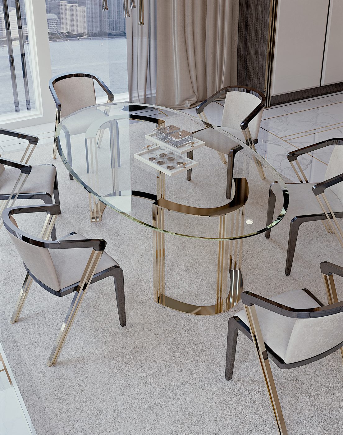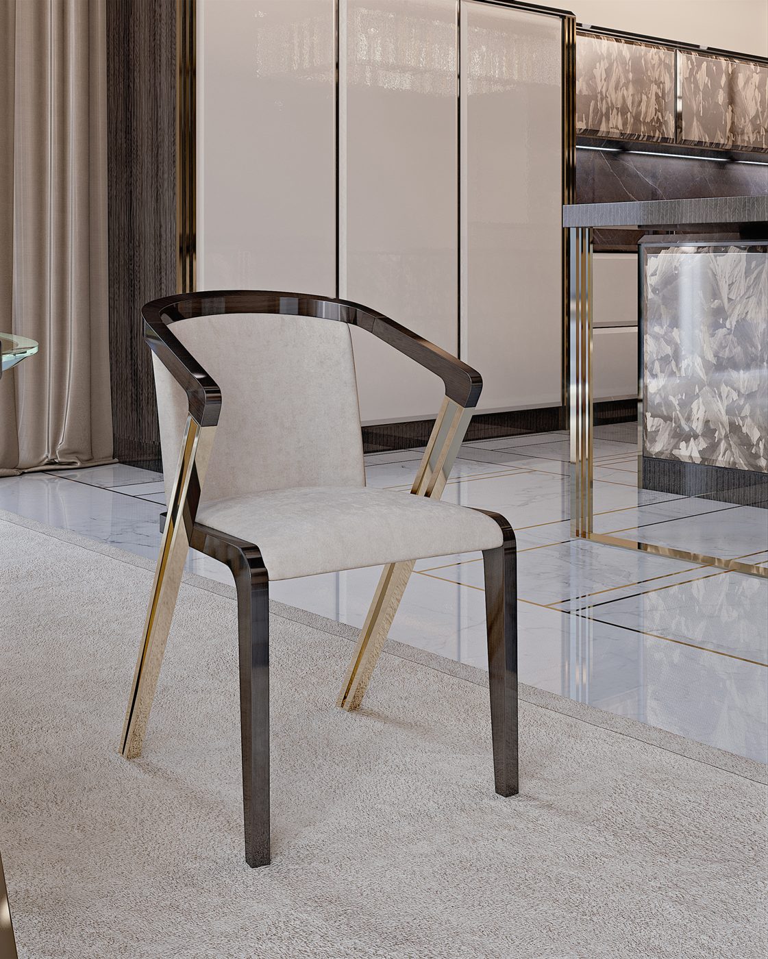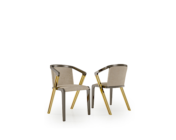 La preziosità degli arredi é accentuata dai riflessi dell’acciaio e dell’oro delle strutture, in perfetta sintonia con gli inserti dell’elegante “Rosa” del marchio Bizzotto Italia elegante dettaglio stilistico senza tempo.