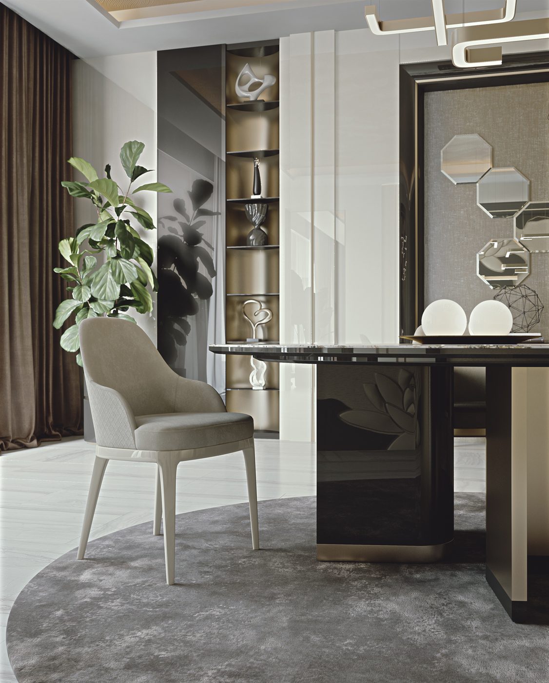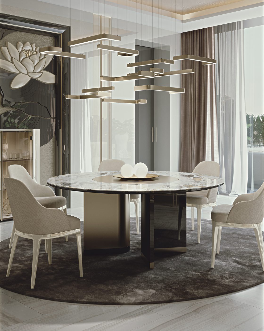Le forme curvilinee offrono spunti progettuali inediti interpretando i trends attuali in termini di versatilità e personalizzazione per offrire soluzioni ideali per ampi spazi dedicati ad un’accoglienza di classe.