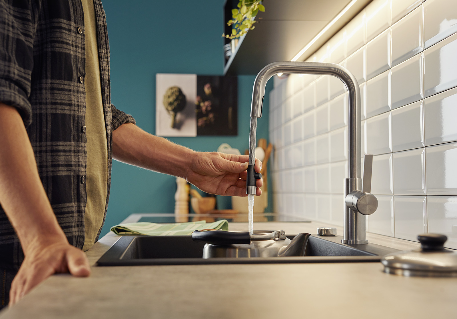 More freedom of movement with installations against a wall thanks to control lever with vertical neutral position