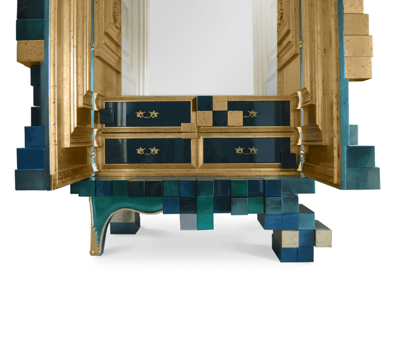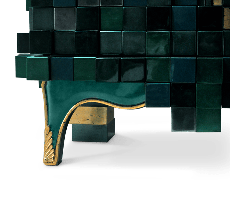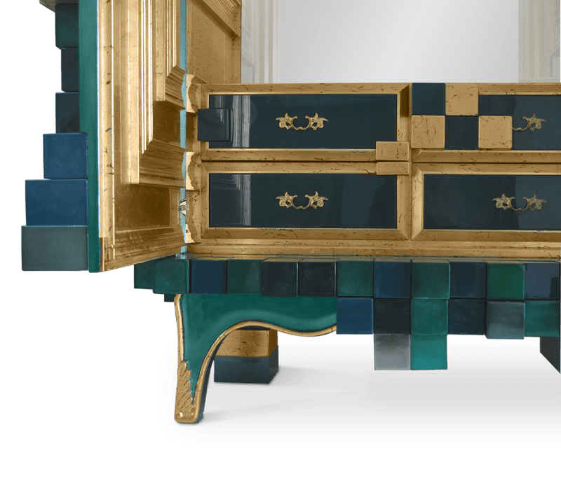 Remarkable and majestic, the Piccadilly cabinet sits comfortably in a league of its own. Taking contemporary furniture design to the very next level, the Piccadilly’s intricate hand carved details, impeccable gold leaf and wood veneer application and astounding form, make it one of Boca do Lobo’s most impressive pieces. Its interior features classic lines and elements, and is composed of two glass shelves and four drawers with traditional handles. The Piccadilly cabinet ultimately represents the passion felt by Boca do Lobo’s talented design team and craftsmen, embodying the brand’s unique philosophy and core values.