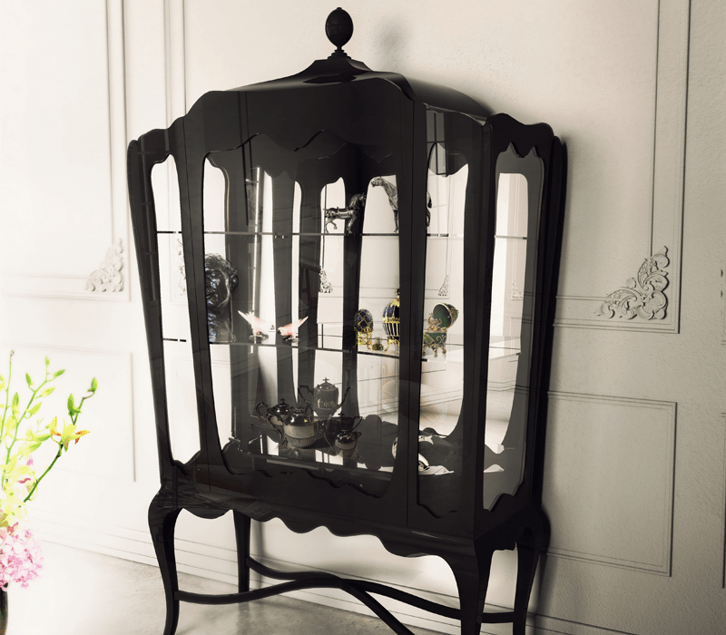 History and heritage may not be the first things that spring to mind when you think of the modern world of Boca do Lobo, although, Palace display case evokes the classic epoch of the 17th century, where princesses were carried in carriages similar to this elegant display case. Palace is a reinterpreted object and a delicate piece with a strong presence that builds the imaginary of those distant times. Its frame surrounds four glass panes, supported by a base that emphasizes the spirit of the piece. Elegantly crafted from mahogany this piece creates a refined ambiance for any modern entrance or dining room.