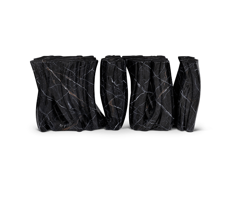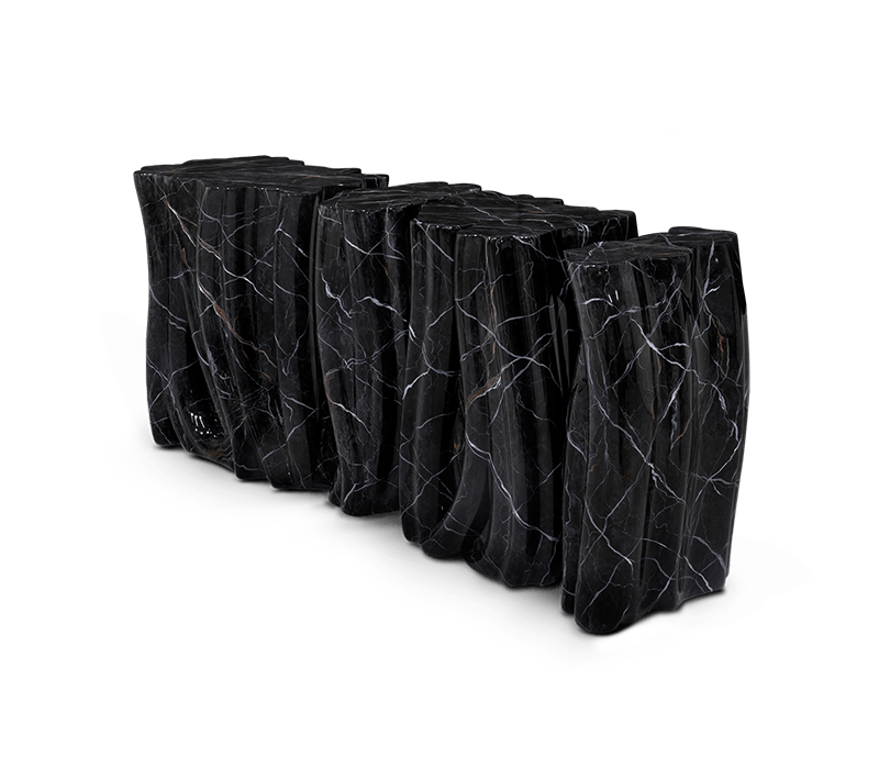 A demonstration of both imagination and strong design skills, the Monochrome console table is a remarkable piece that stands out in any room or setting. Perfect for living spaces grounded in a contemporary style as they embrace careful craftsmanship, this console expresses a leading edge outlook through its daring curvy shapes and dark tones. Carefully built from resin, the Monochrome is composed of three separate modules, embellished with handpainted faux-marble as a result of advanced experimentations, and finished with a high gloss varnish coat. An avant-garde console that conveys a seductive and fearless attitude due to its unique and challenging design.