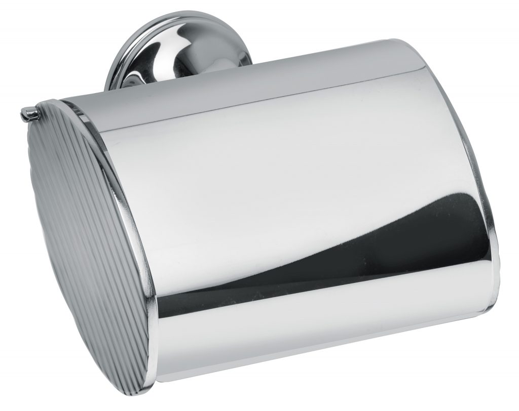 Toilet paper holder with flap.