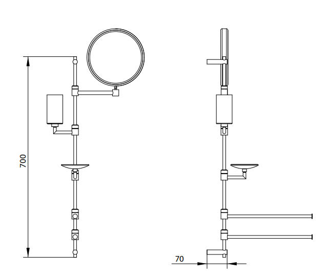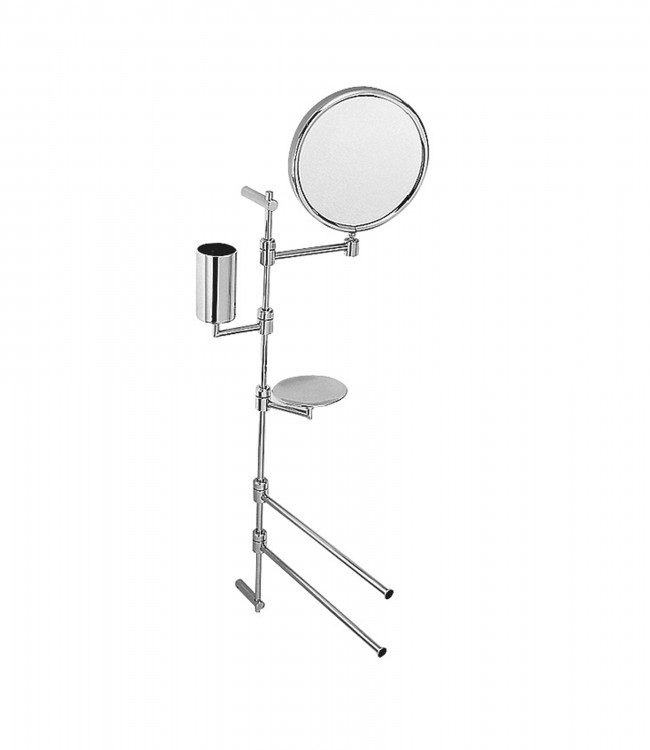 Mms. 700 wall bracket with soap holder, glass holder, 2 towel rails and top magnifing mirror.