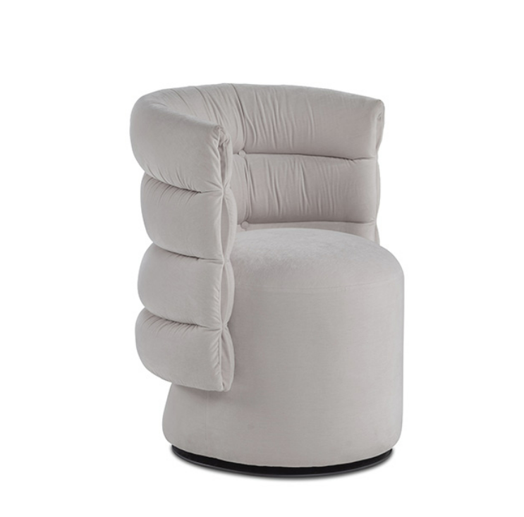 Dopo il grande successo della versione francese (la Madame G), la Giuggiola dà il benvenuto alla sua versione inglese: la Lady G. La nuova versione, disponibile come le altre nelle versioni swivel, contenitore e swivel-contenitore, si differenzia per la forma della spalliera che la avvolge. La seduta rimane invariata nella sua classica forma a coda e l’abito da sera nella Lady G viene “ricoperto” da un morbido piumino trapuntato, che ricorda quelli delle ultime fashion collection e che ne costituisce la spalliera. Ulteriori elementi di decoro sono rappresentati dai 4 bottoncini centrali e dalla particolare chiusura frontale. Una Lady in versione invernale, ma con stile.