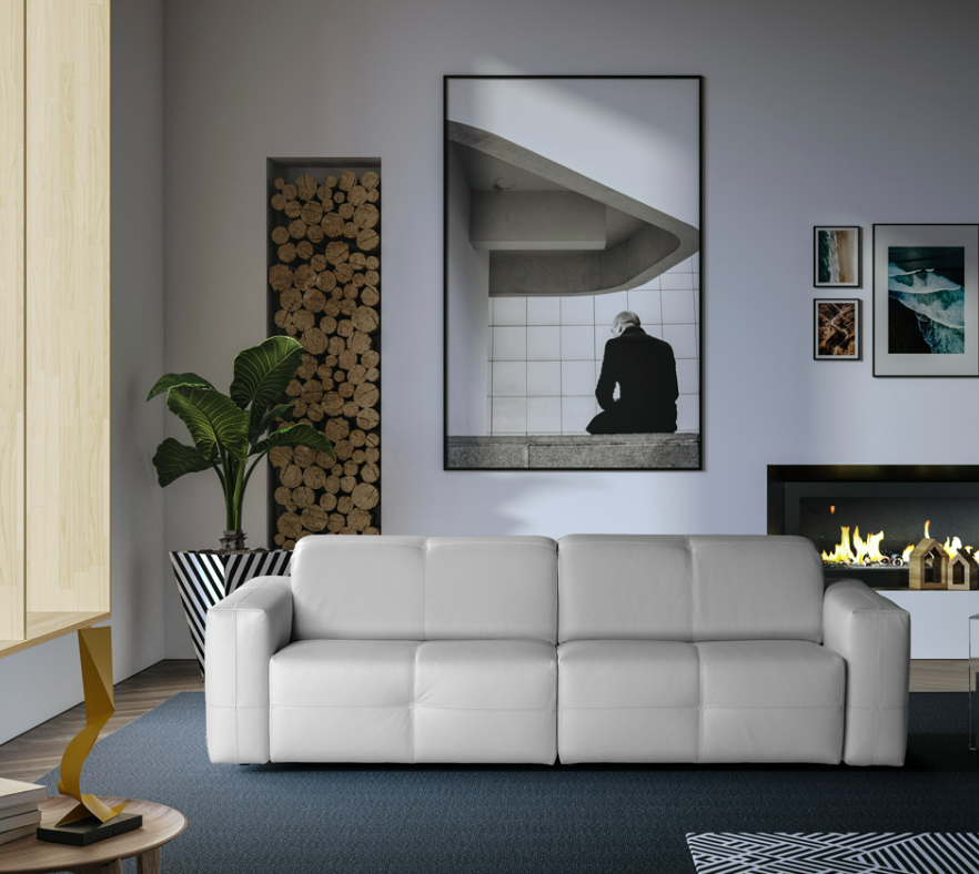Nicolas è il divano moderno e ricercato in cui la rigorosità delle forme si coniuga con la morbidezza delle imbottiture. Dotato di poggiatesta sollevabile manualmente, è anche disponibile in versione recliner o motion che allunga la seduta di 40 centimetri rendendola una chaise longue. La versione recliner è disponibile anche sulla seduta extralarge che permette di ospitare comodamente due persone.