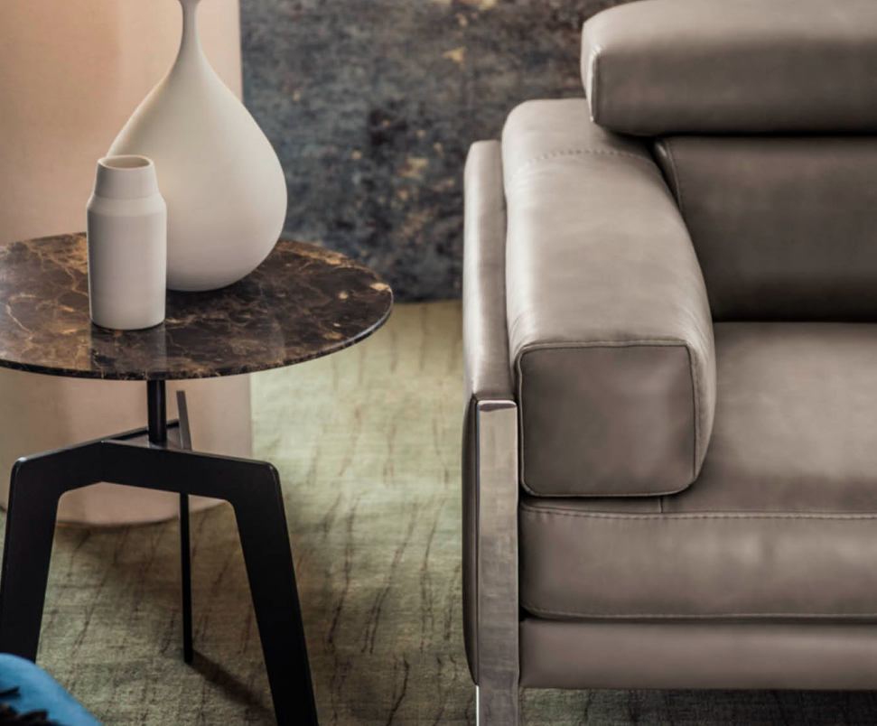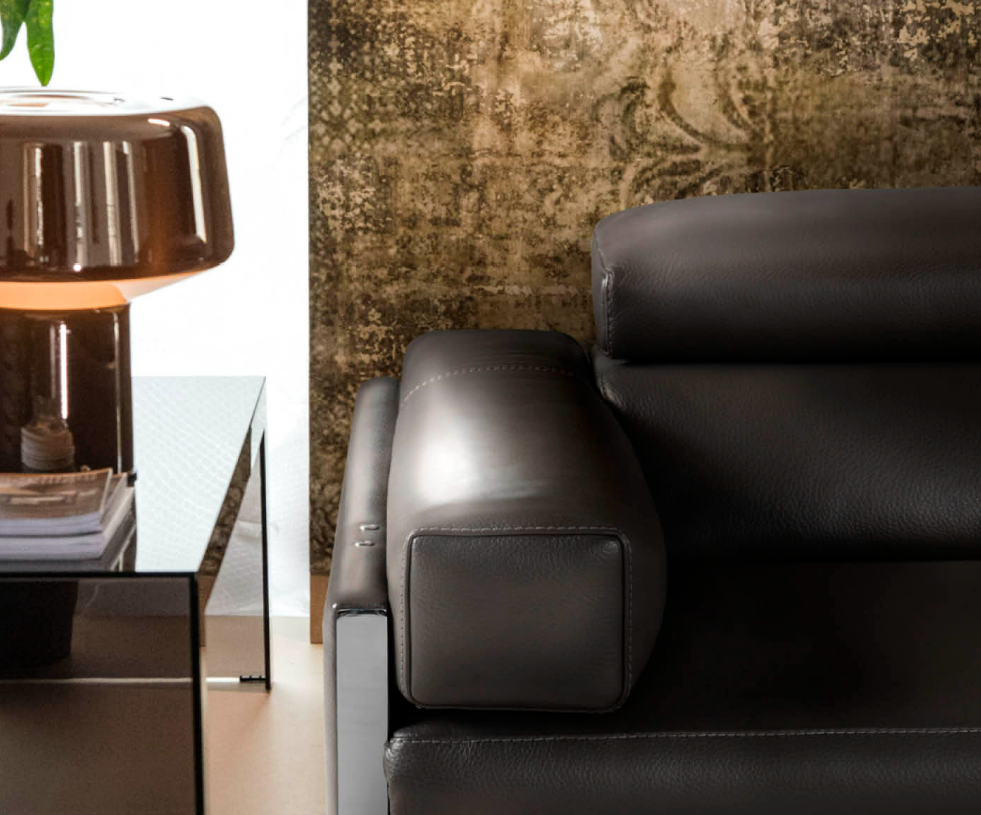 Dal design lineare, sospeso su basi in acciaio lucido che, salendo fino al bracciolo, diventano forte elemento decorativo, Romeo è protagonista assoluto dell’arredamento. Attraente in ogni caso: nella versione fissa o componibile, è dotato di poggiatesta sollevabile che garantisce un comfort ottimale aumentando, se azionato, l’altezza della spalliera. Il Romeo _2 prevede una variante importante che ne cambia completamente l’aspetto: il piede in legno.