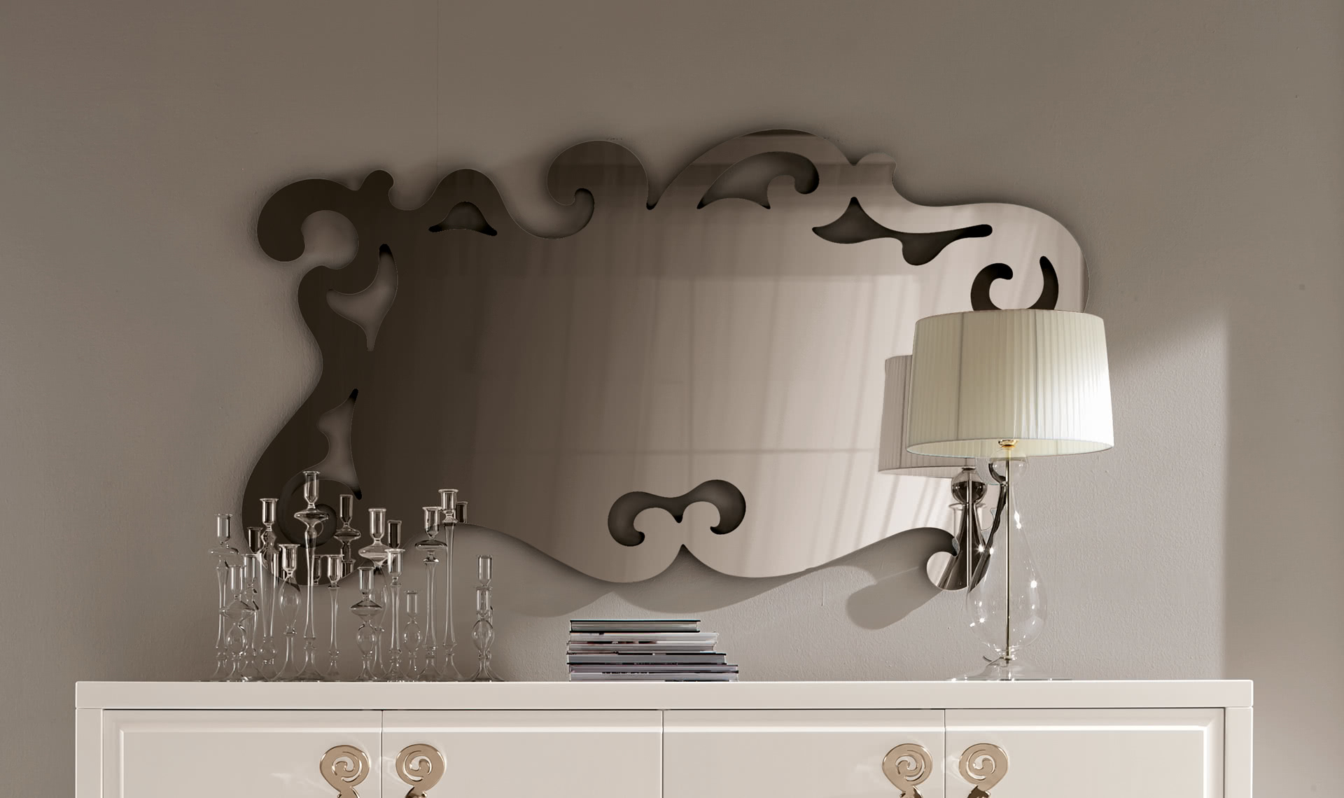 La base in vetro boro silicato, soffiato a lume, decorato e bombato a mano (resistente al calore e inattaccabile da acidi) è caratterizzato da una particolare brillantezza; la struttura in vetro può subire una naturale variazione di dimensione. La montatura è realizzata in ottone, mentre il paralume, a tronco di cono, è in tessuto plissettato. Una lampada da tavolo perfetta per una camera da letto, una sala o un ingresso dal sapore internazionale e sofisticato.
