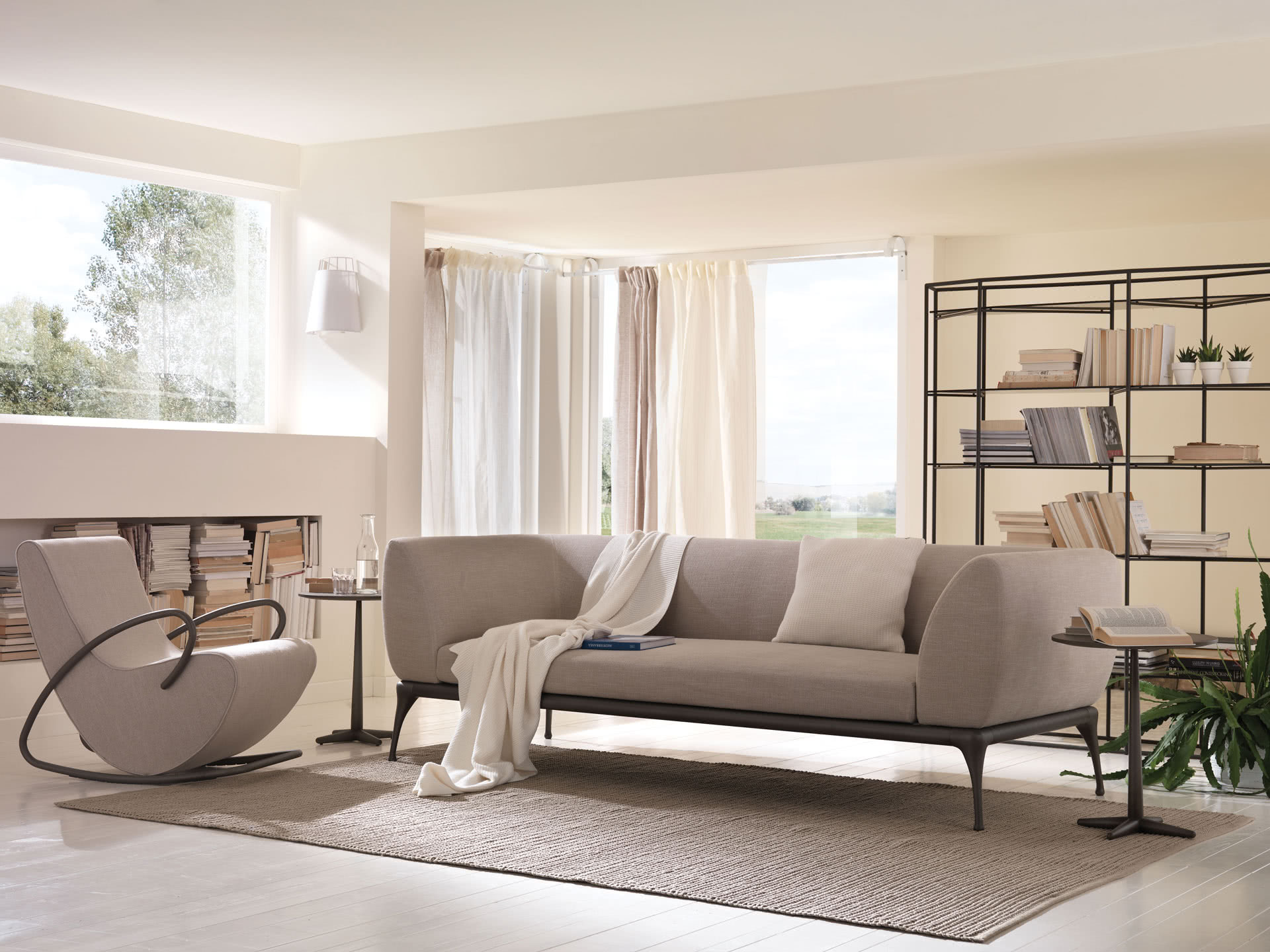 Poltrona a dondolo vintage di design Camilla con struttura in metallo.