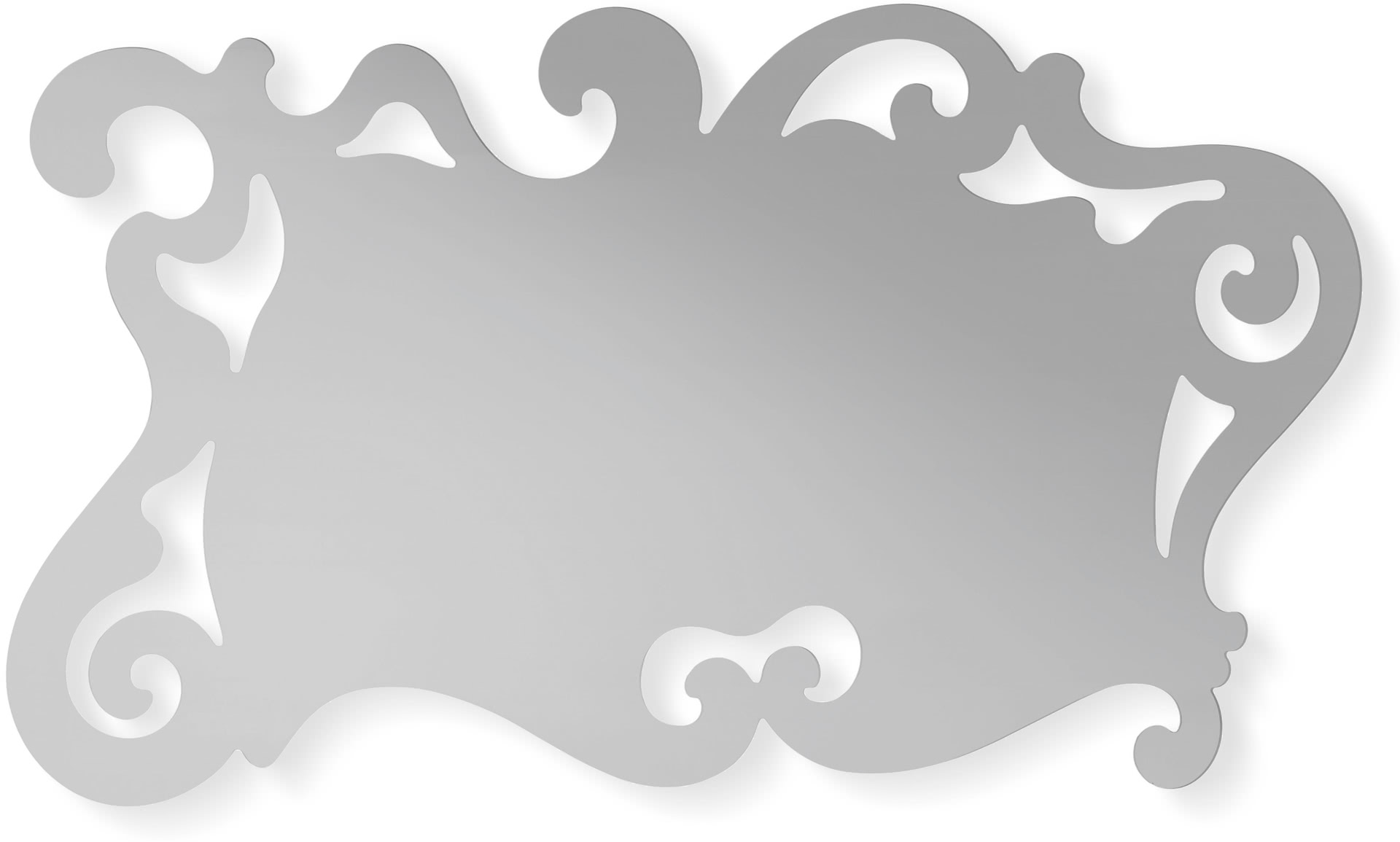 La superficie dello specchio, realizzato in vetro argentato a doppio fondo e tagliato ad acqua, è coperta da un pannello sagomato di sostegno e rinforzo. Un segno grafico pulito dal design classico ma adatto anche ad un gusto moderno. Perfetta sopra una madia o comò, nella sala o in camera da letto.