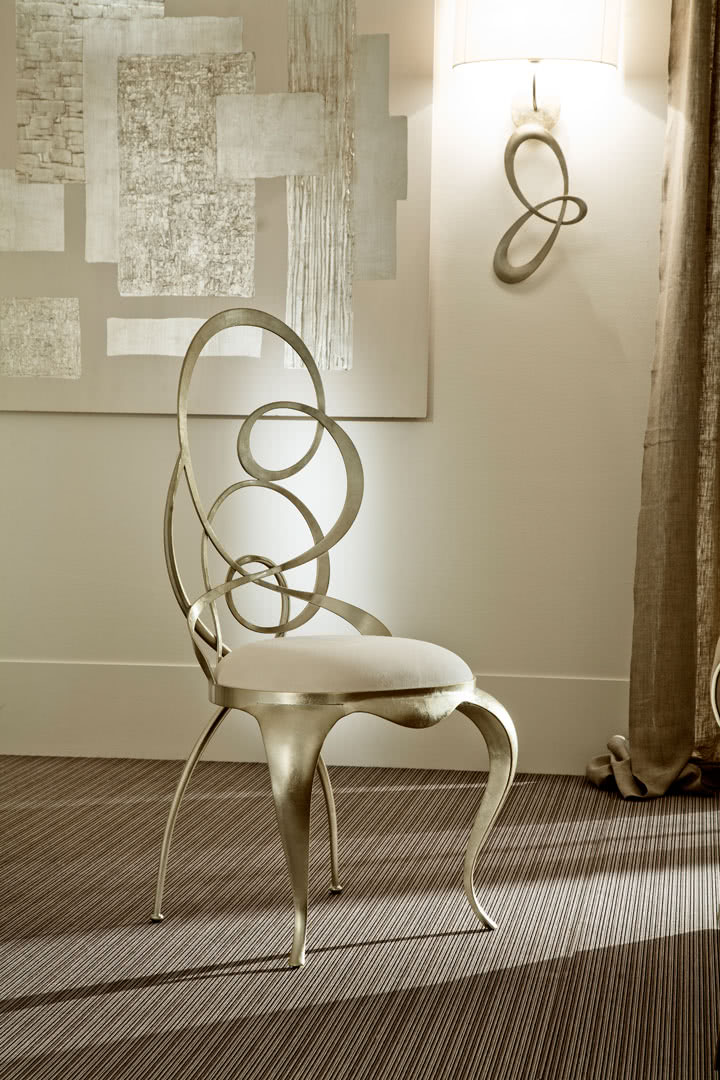 Sedia classica imbottita Ghirigori con struttura in ferro.